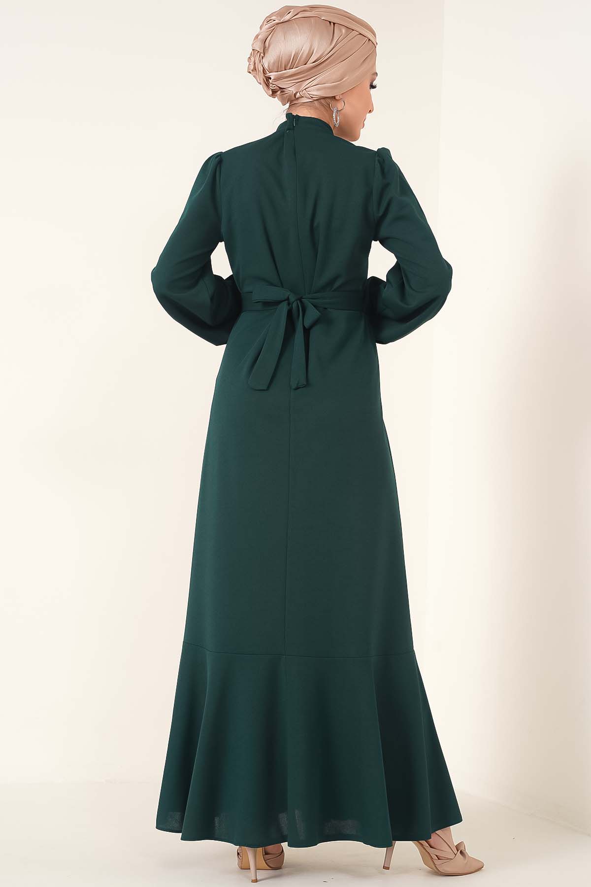 Yeni sezon elbisemiz harika görünümüyle sizlerle birlikte. Sırtında fermuar bulunmaktadır. Beli kuşaklıdır. Etek ucu fırfırlıdır. Bilekleri lastiklidir. Her ortamda rahatlıkla giyebilirsiniz. Farklı renkleri mevcuttur.