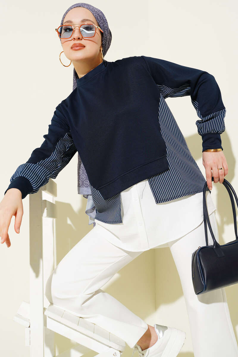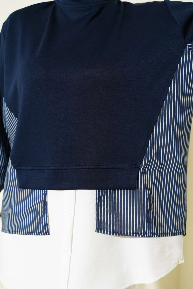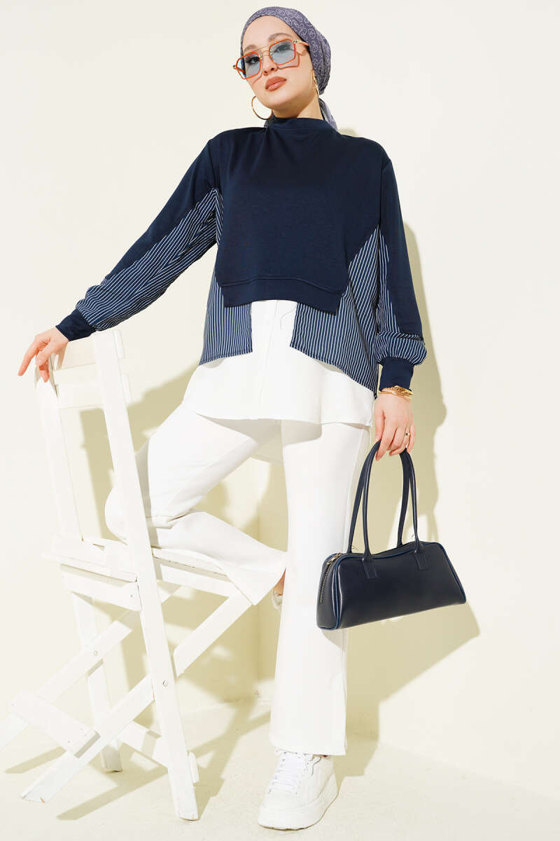 Denizci Yaka Nervürlü Tunik Lacivert