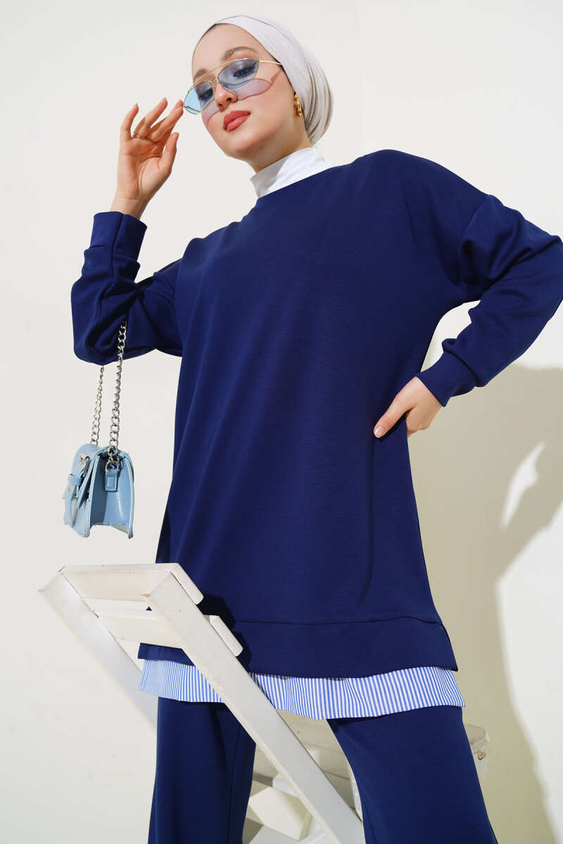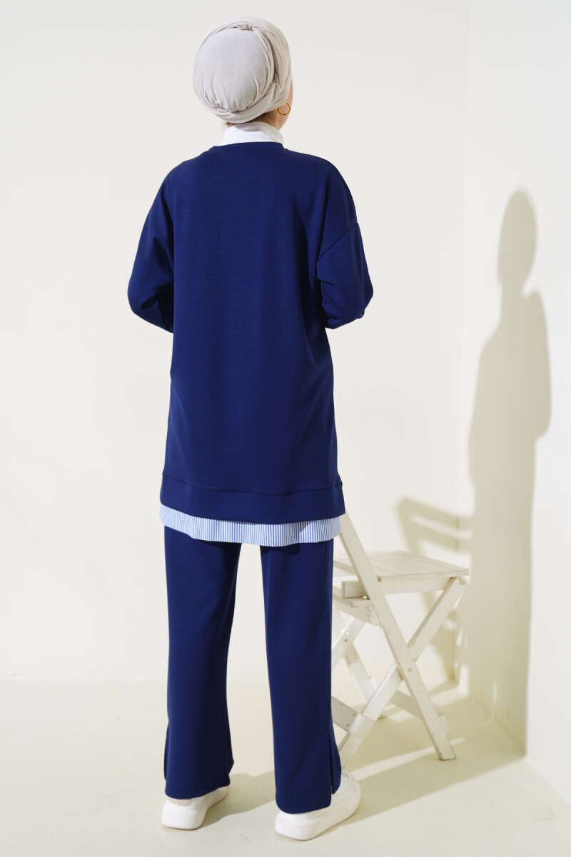 Çizgi Garnili Asimetrik İkili Takım Lacivert