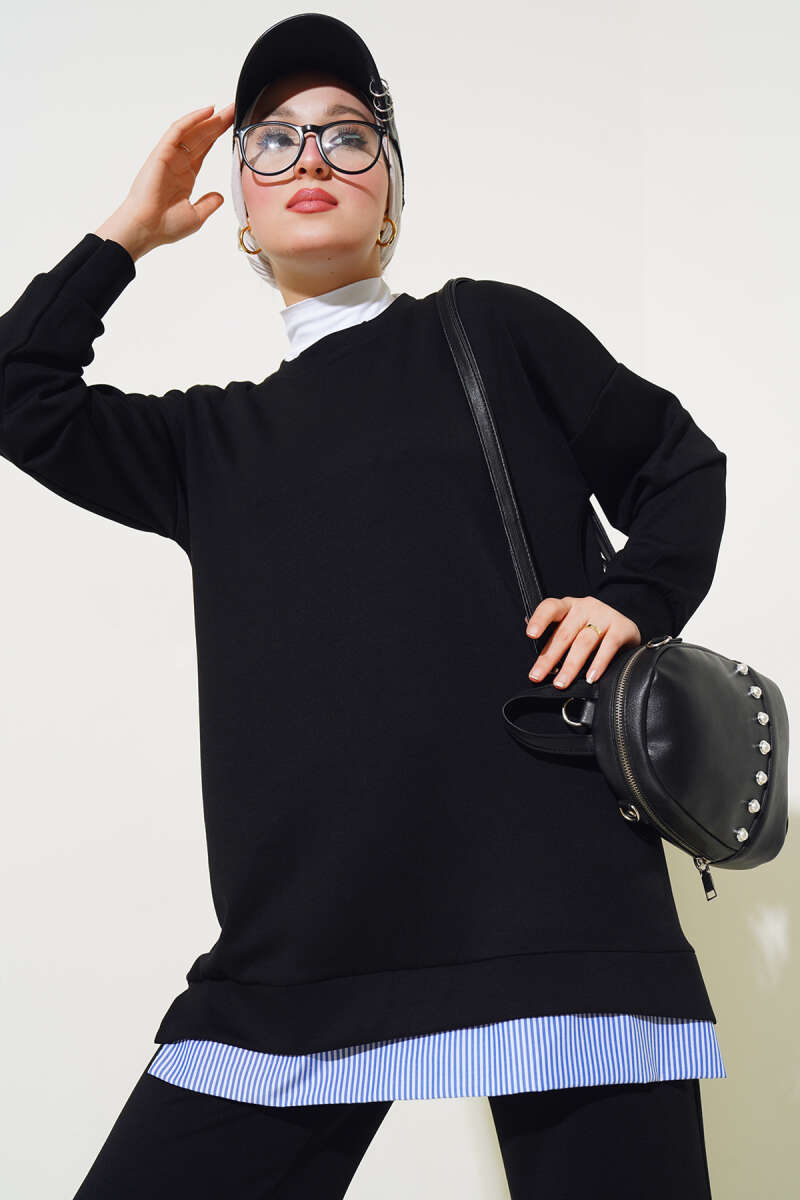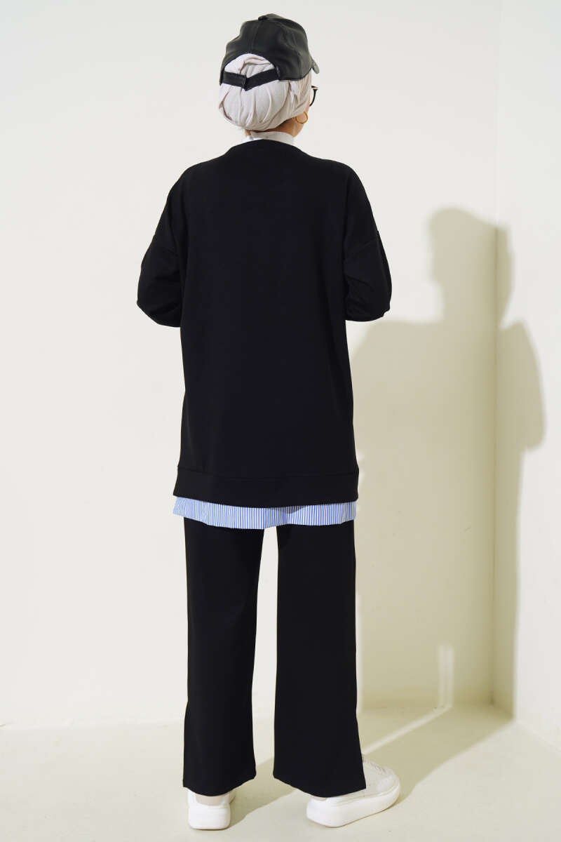 Brit Düğmeli İp Kuşaklı Tunik İkili Takım Lacivert