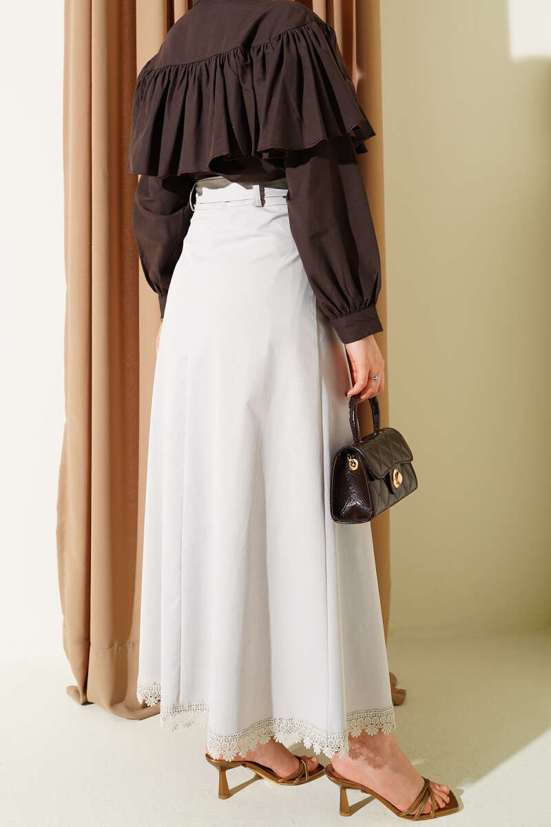 Bel Lastikli Dantelli Kloş Etek Kahve