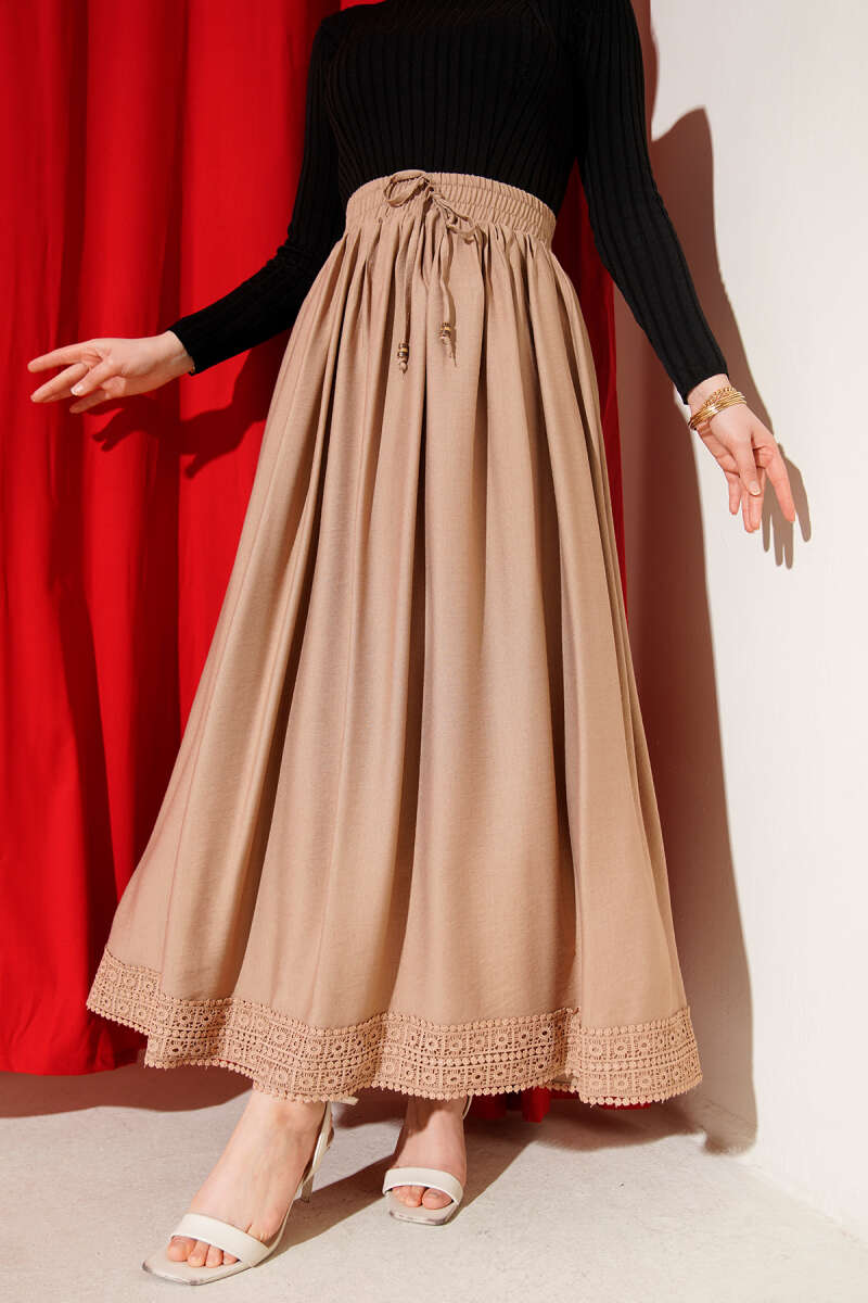 Etek Ucu Güpürlü Kloş Etek Siyah