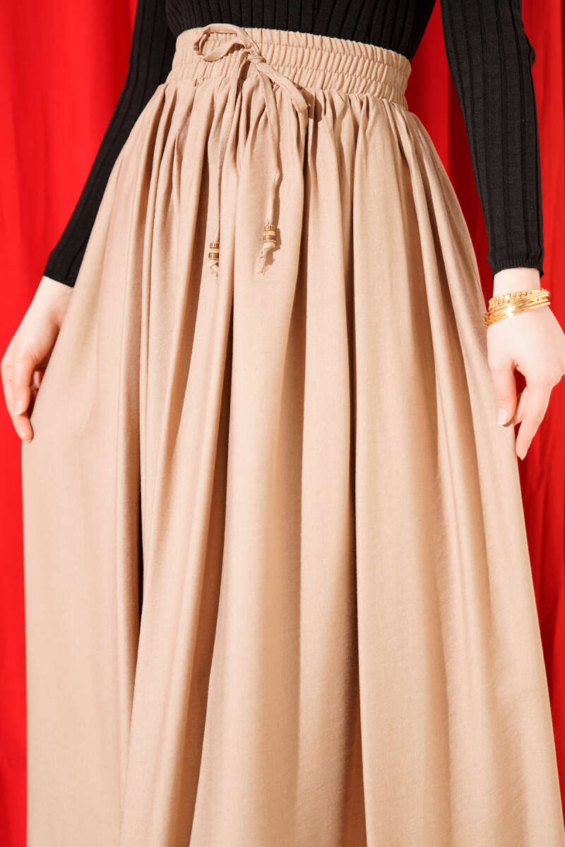 Etnik Desenli Kemerli Kloş Etek Siyah