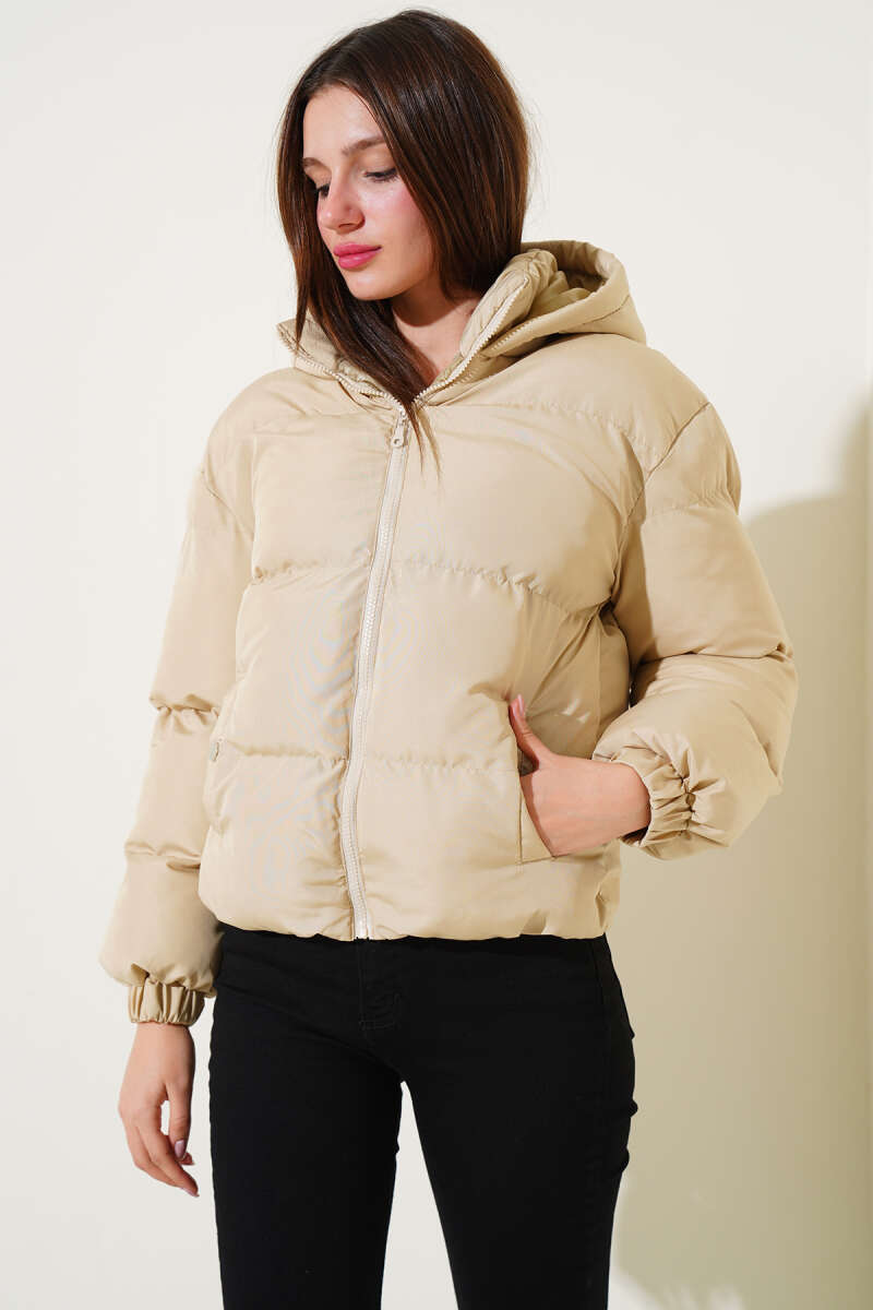 Göğüs Kürklü Kapüşonlu Kapitone Mont Füme