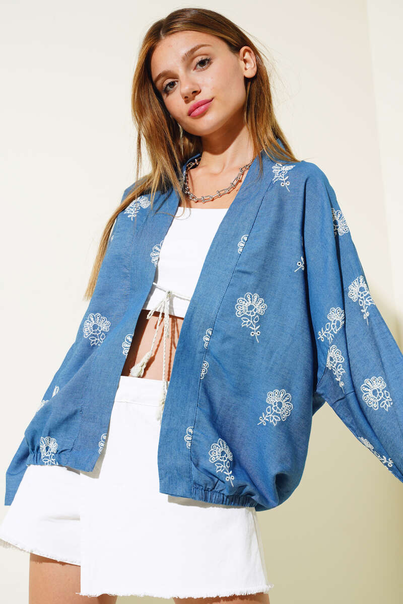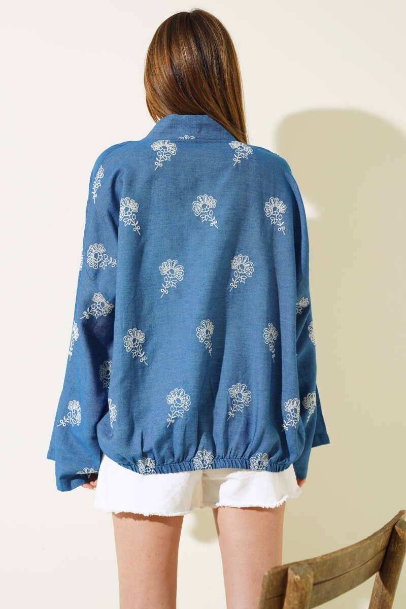 Bel Lastikli Balon Kol Jakar Ceket Lacivert