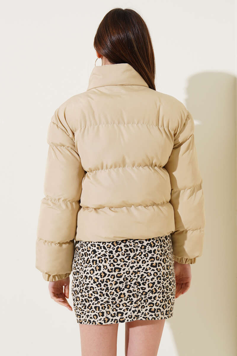 Etek Ucu Lastikli Kısa Şişme Mont Bej