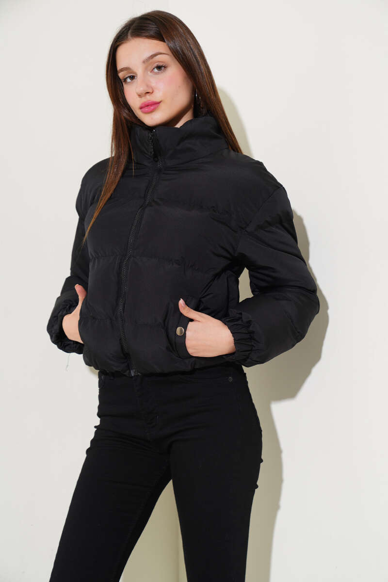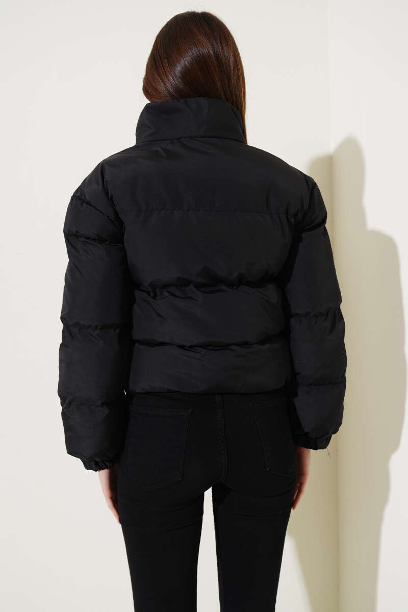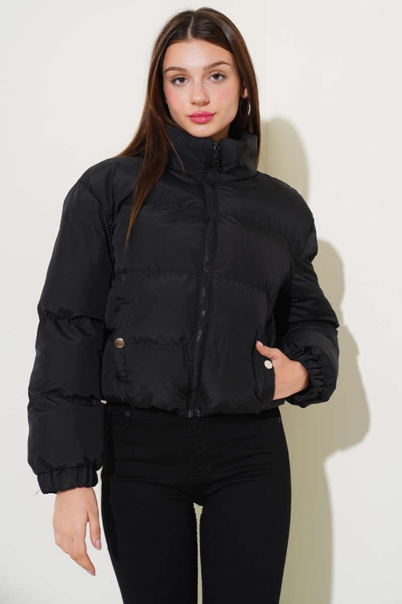 Düğmeli Gömlek Yaka Keçe Ceket Siyah