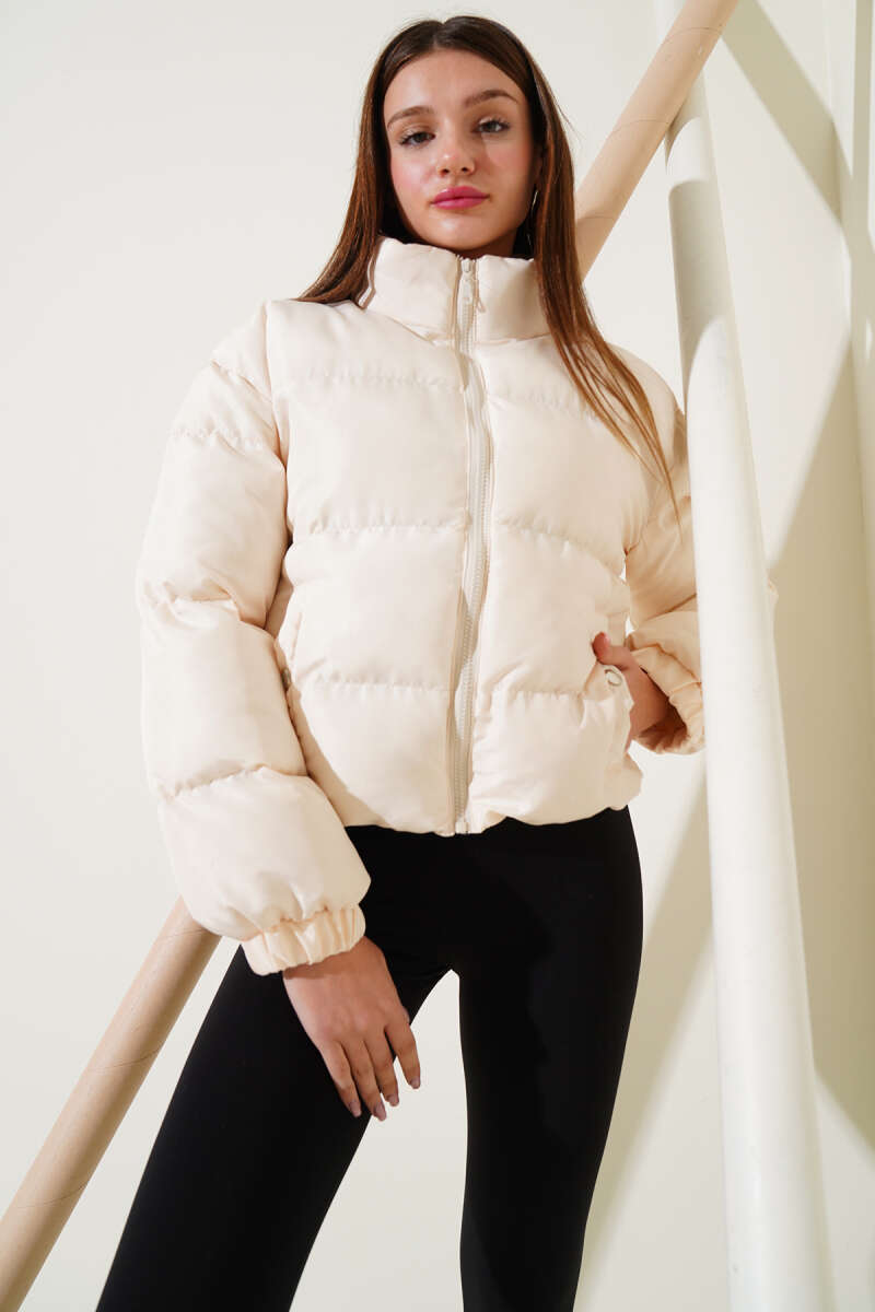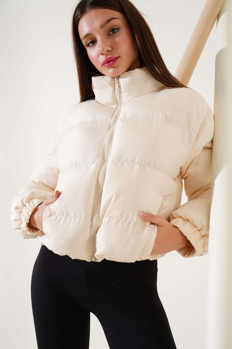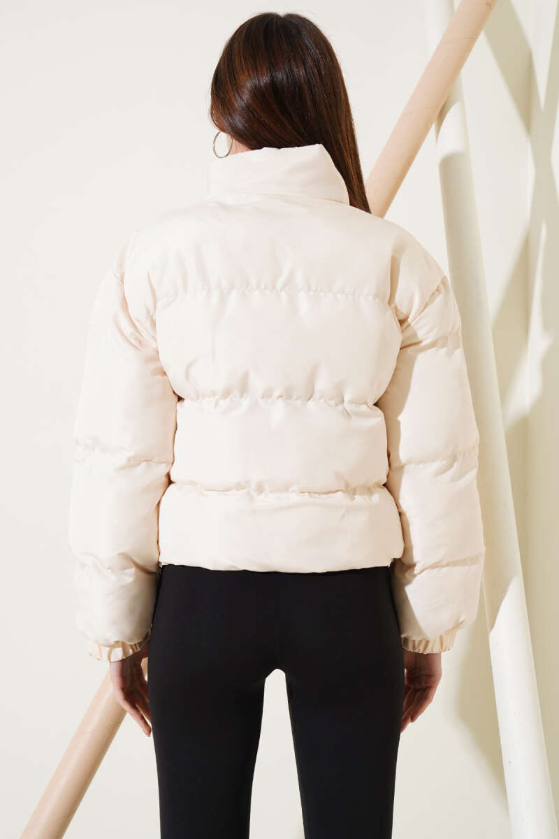 Gömlek Yaka Kuşaklı Kaşe Panço Bej