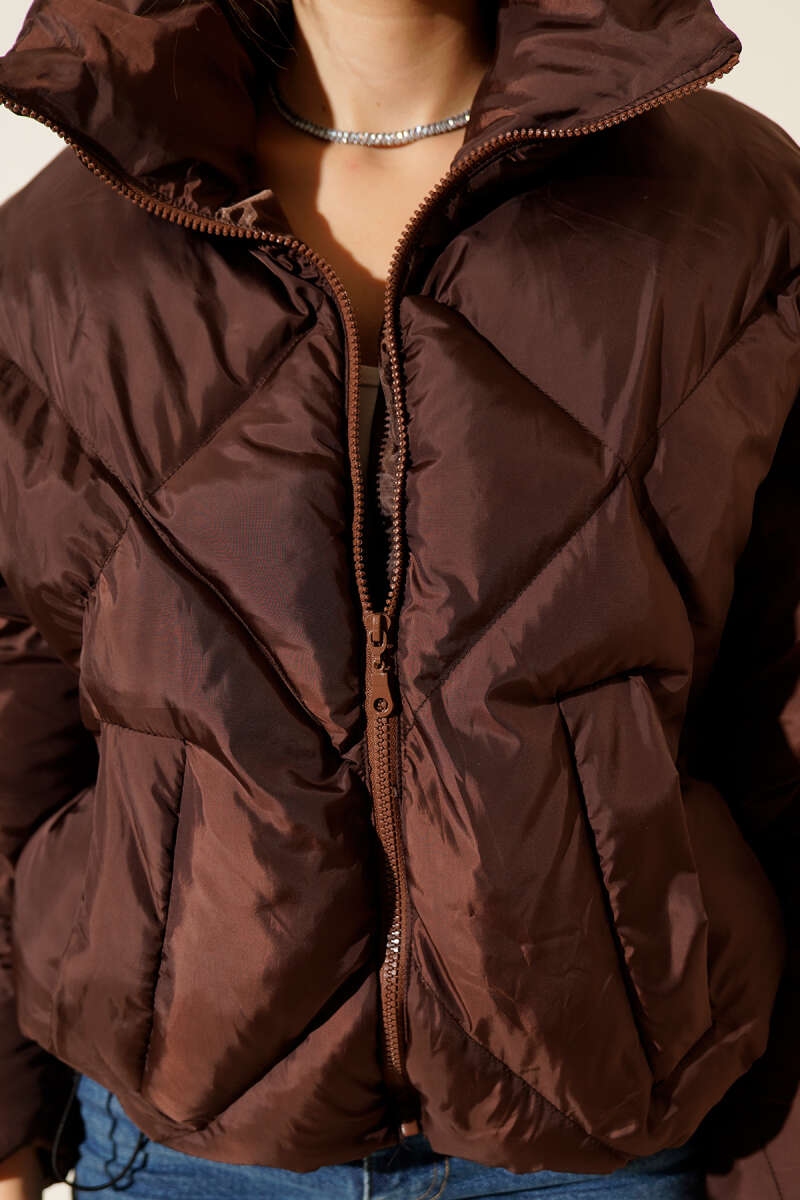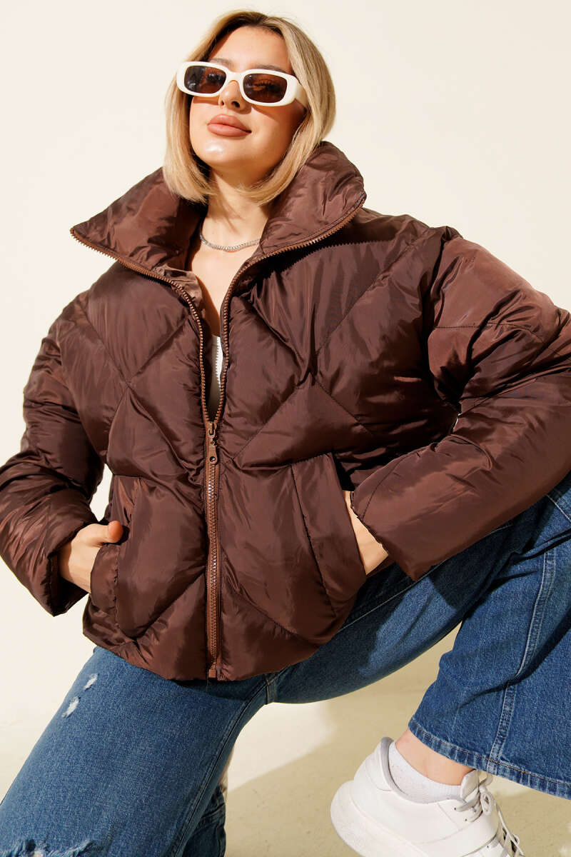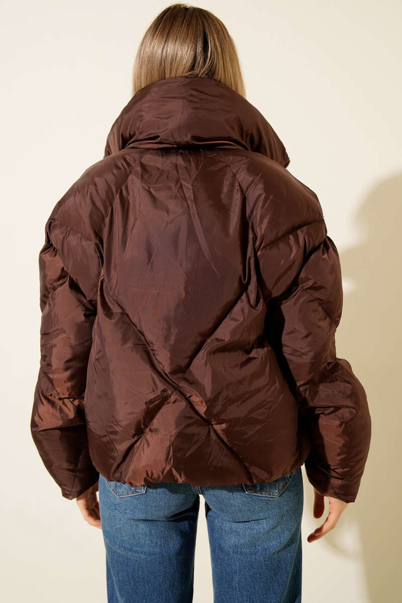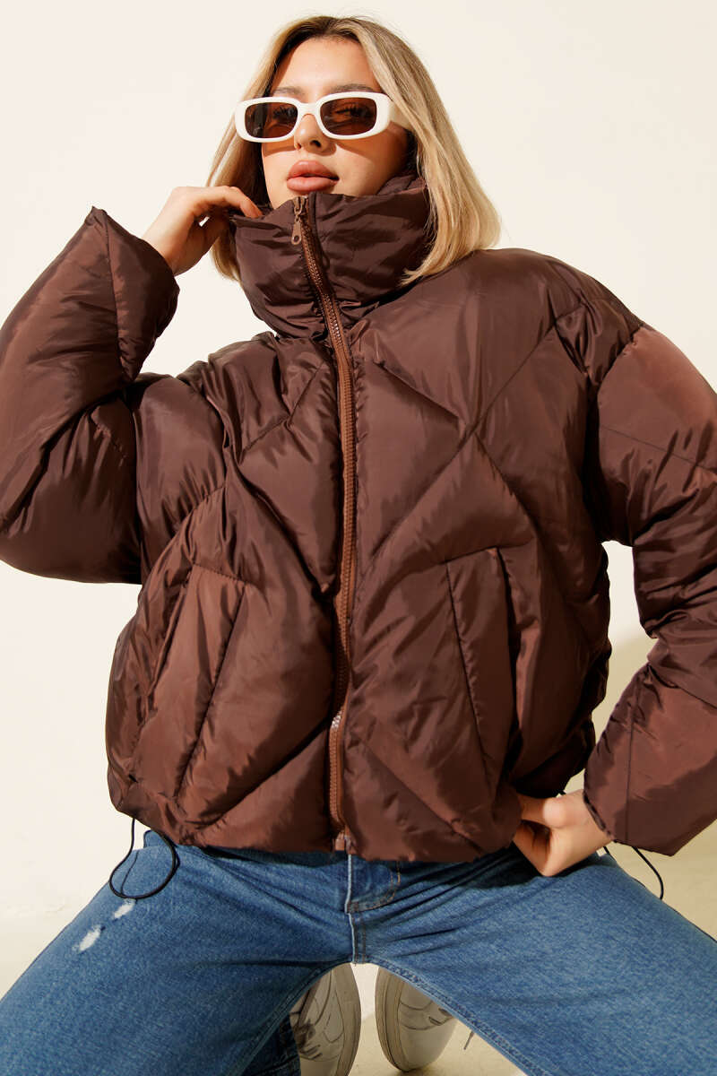 Etek Ucu Lastikli Şişme Kısa Mont Siyah