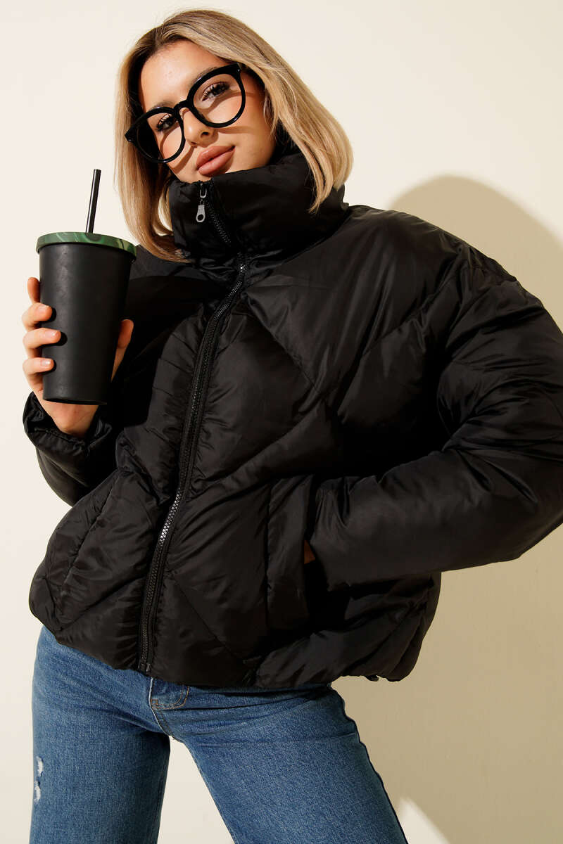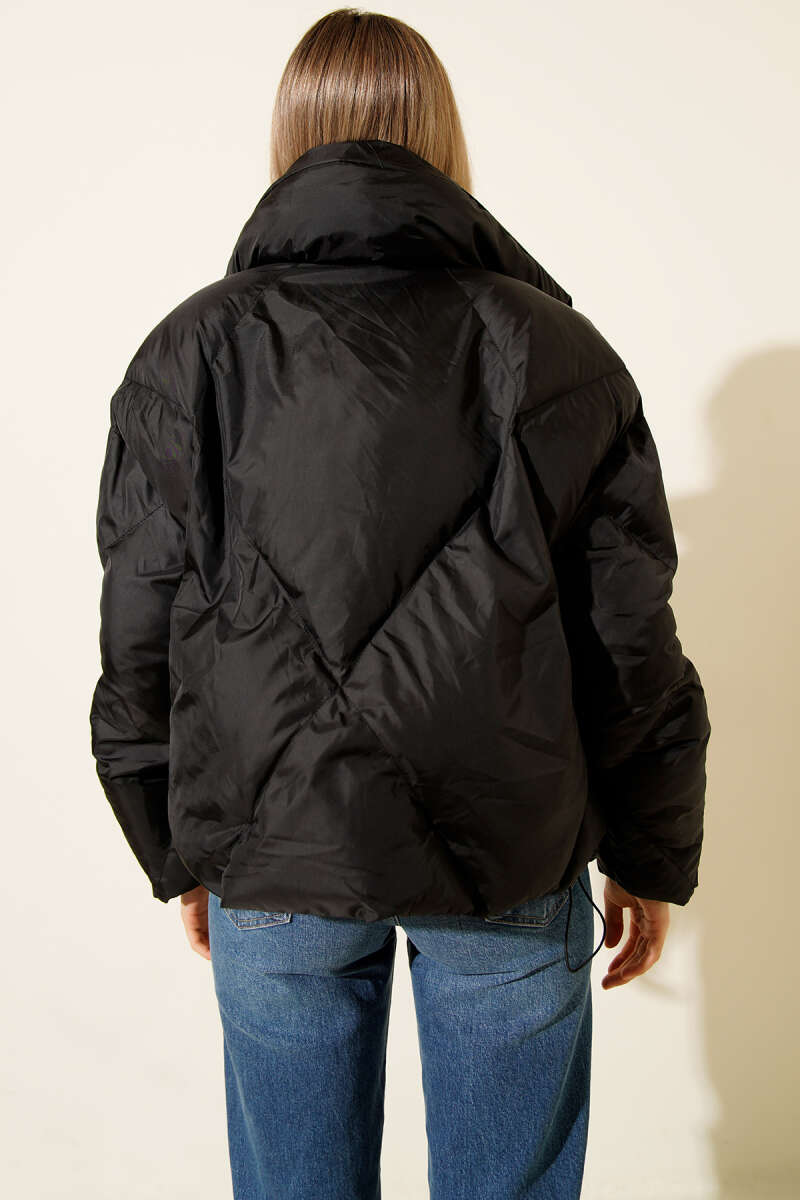 Kapuşonlu Kapitone Kısa Yelek Siyah