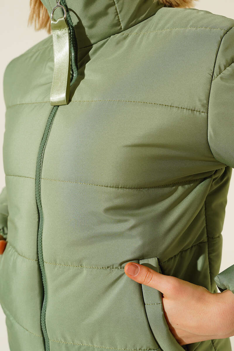 Etek Ucu Lastikli Şişme Mont Yeşil