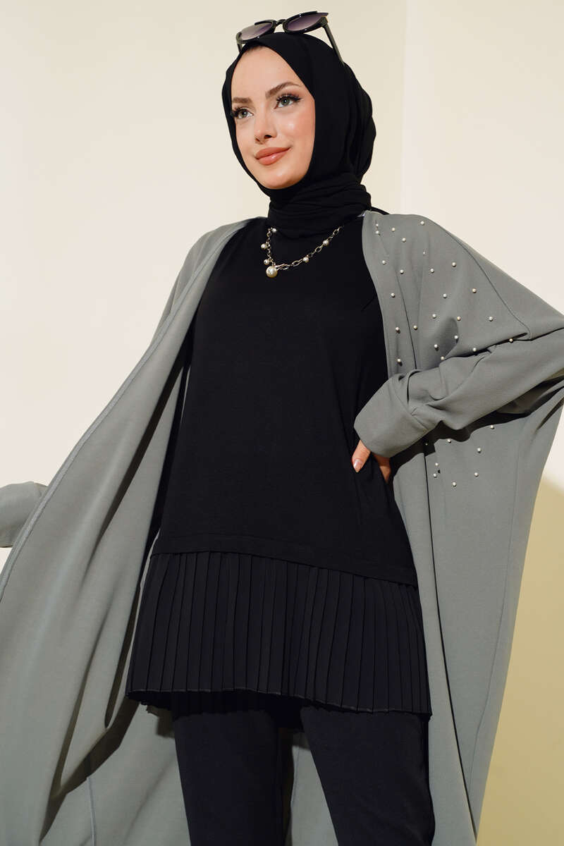 Yeni sezon içliğimiz sizlerle beraber. İçliğimiz sıfır koldur. Etek ucu pileli modeldir. Oval yakadır. Hem sade hem şık kombinlerinize uyum sağlayacaktır.