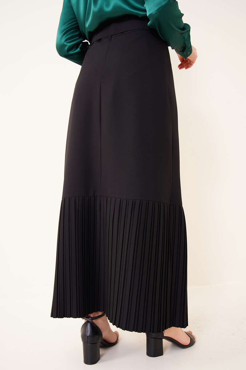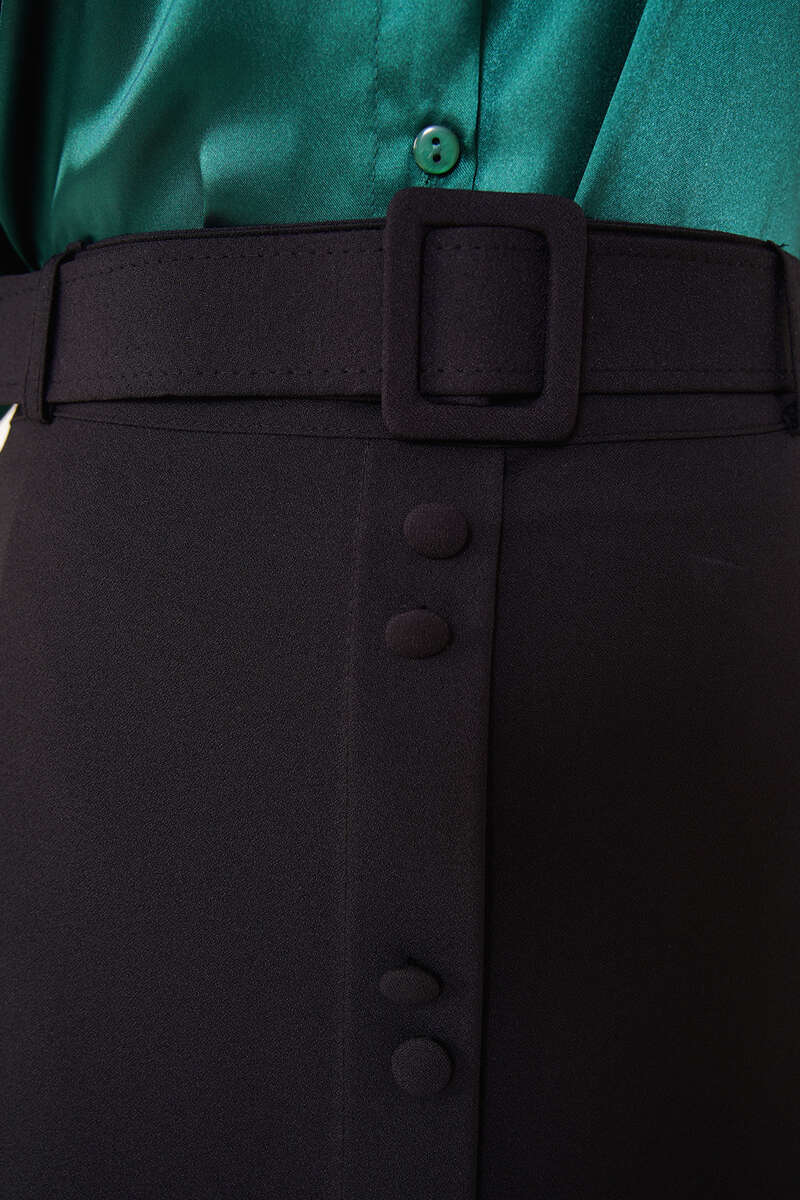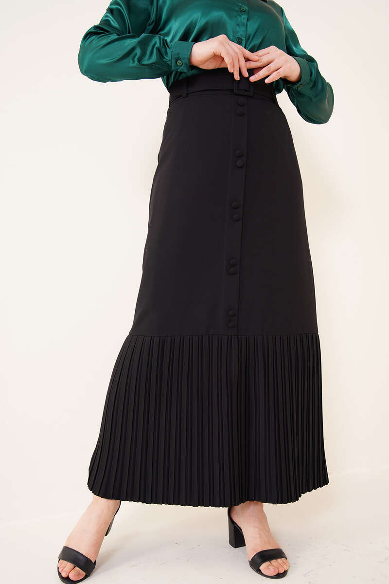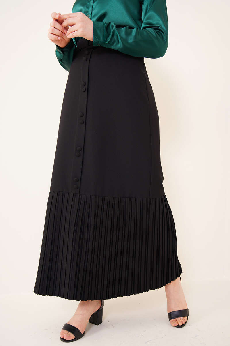 Etek Ucu Piliseli Düğmeli Siyah Etek