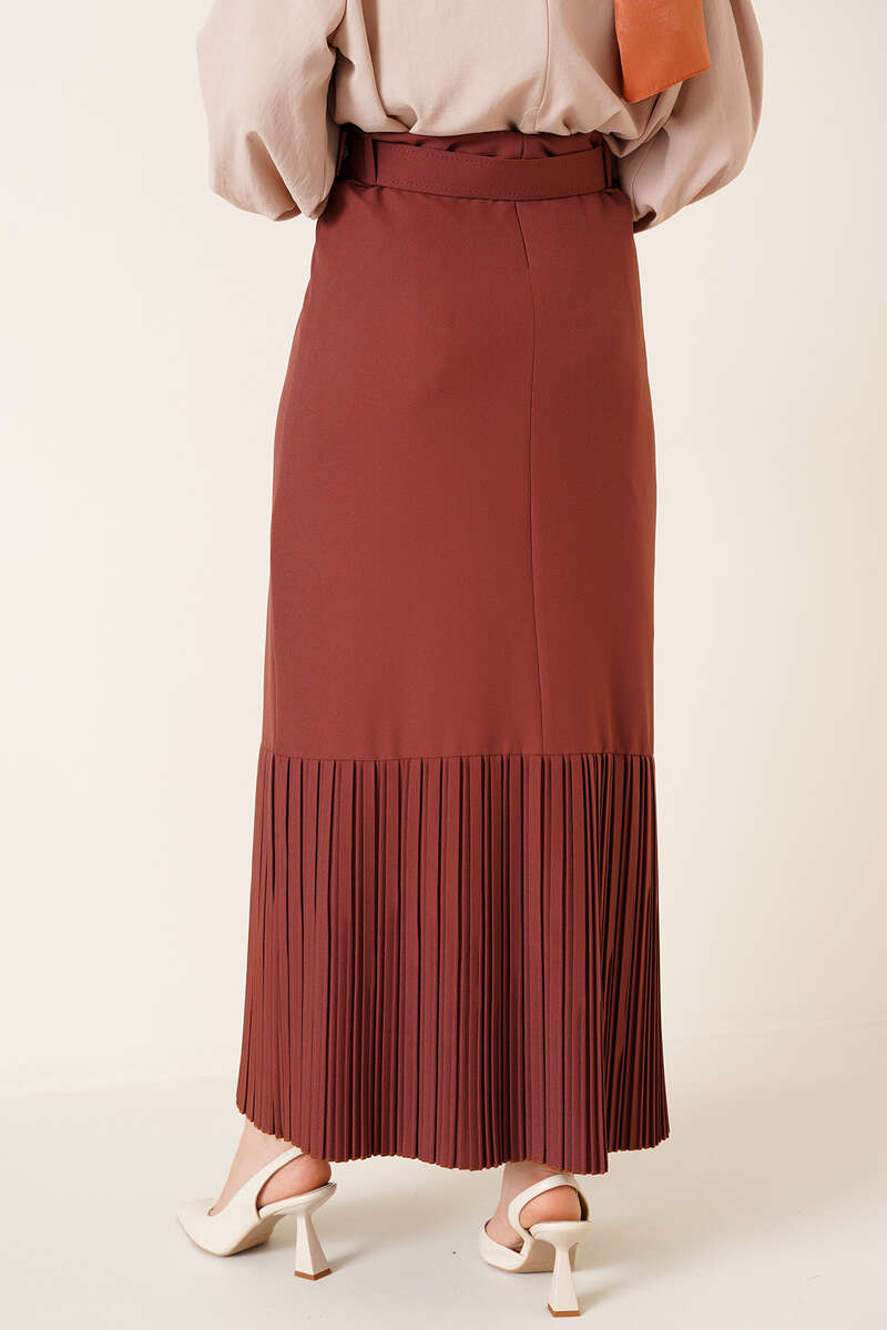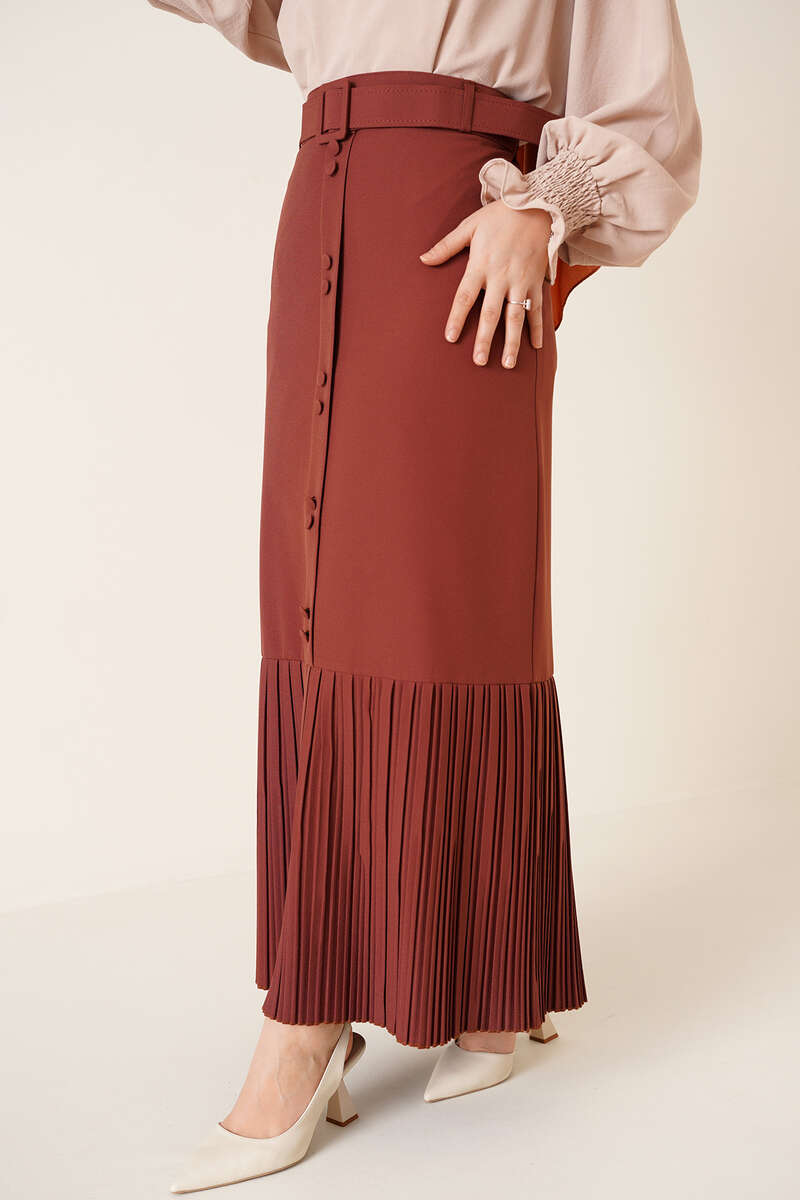 Etek Ucu Piliseli Düğmeli Taba Etek