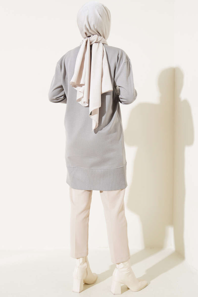 Bilek Düğmeli Fitilli Triko Tunik Gri