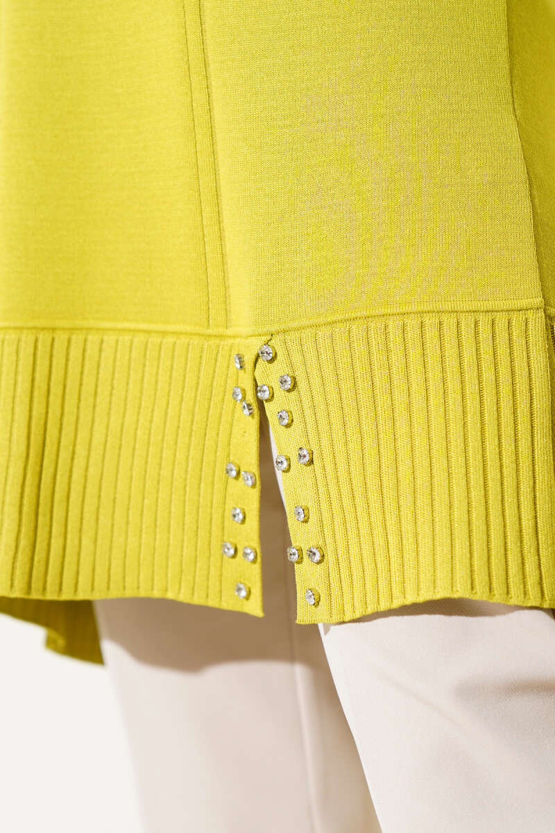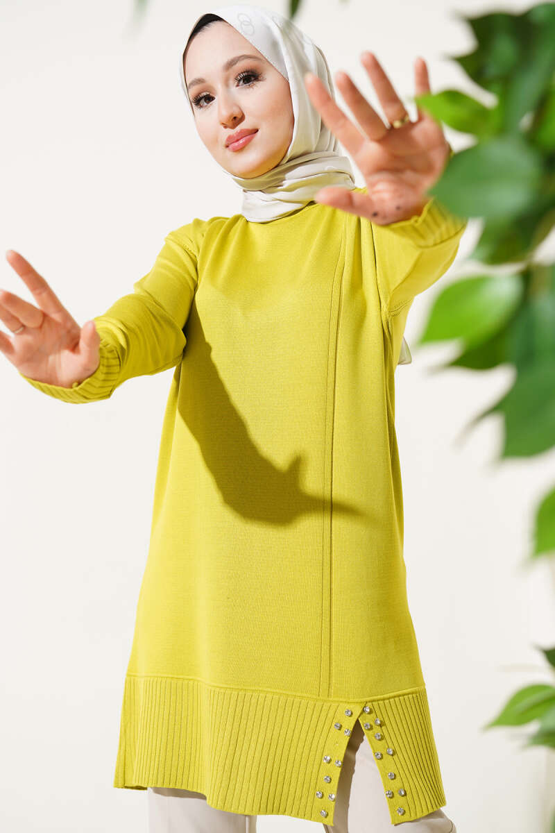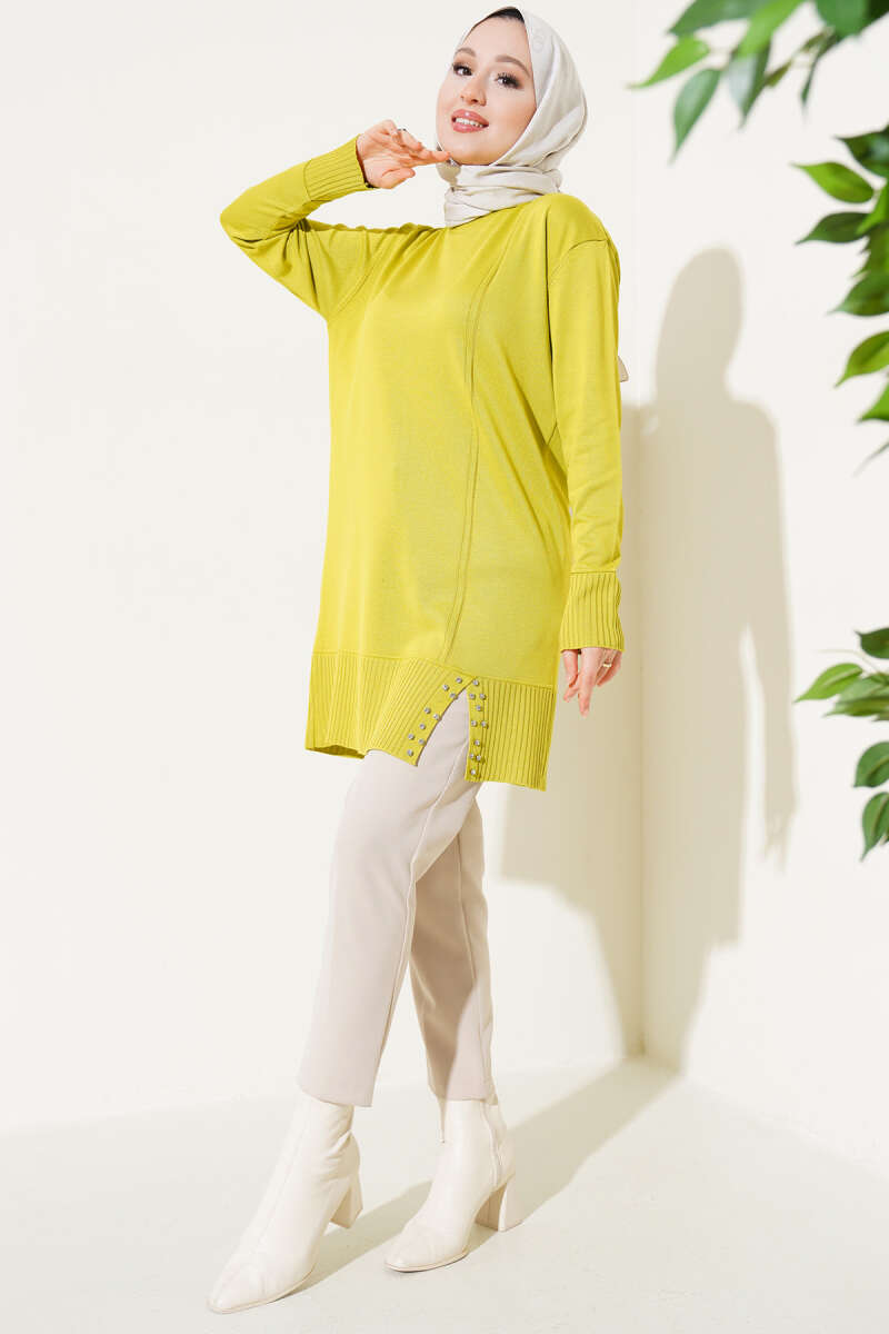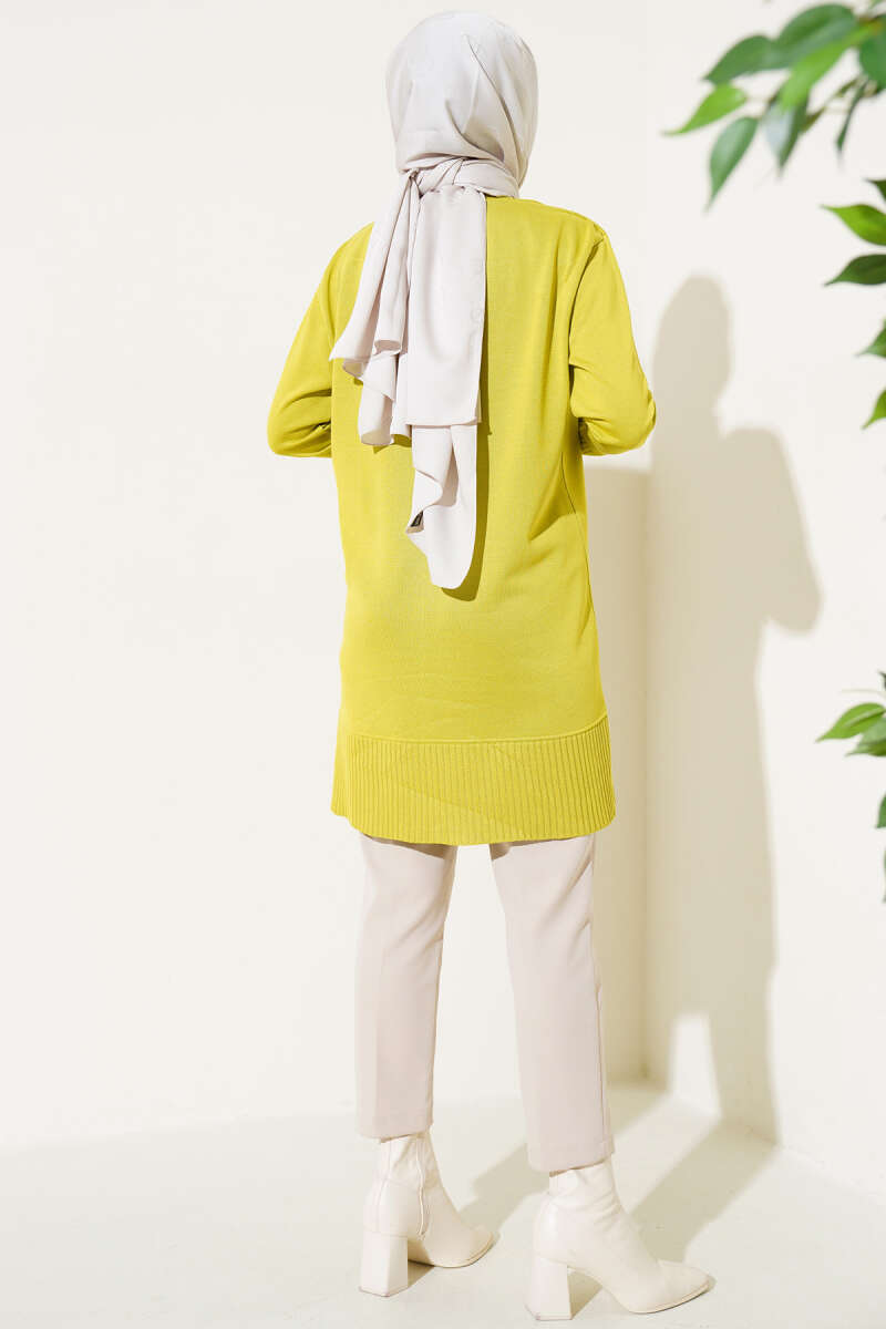 Asimetrik Kabartma Çizgili Triko Tunik Sarı