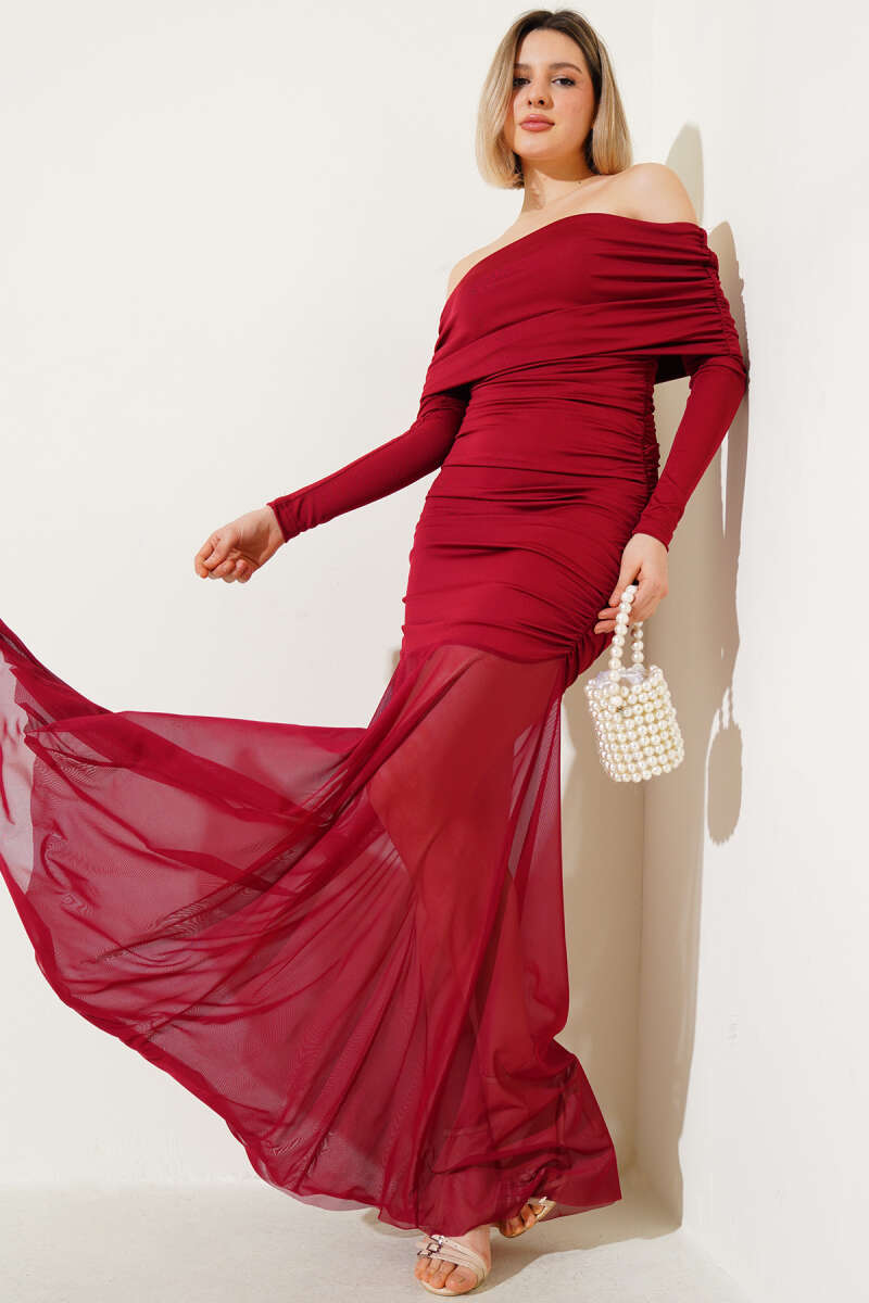 İp Bağlamalı Duble Kol Triko Tunik Bordo
