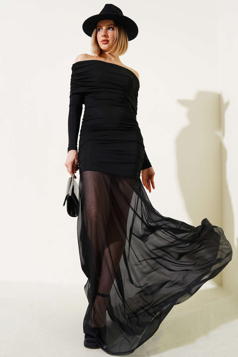 Kapüşonlu Yarasa Kol Kürk Siyah