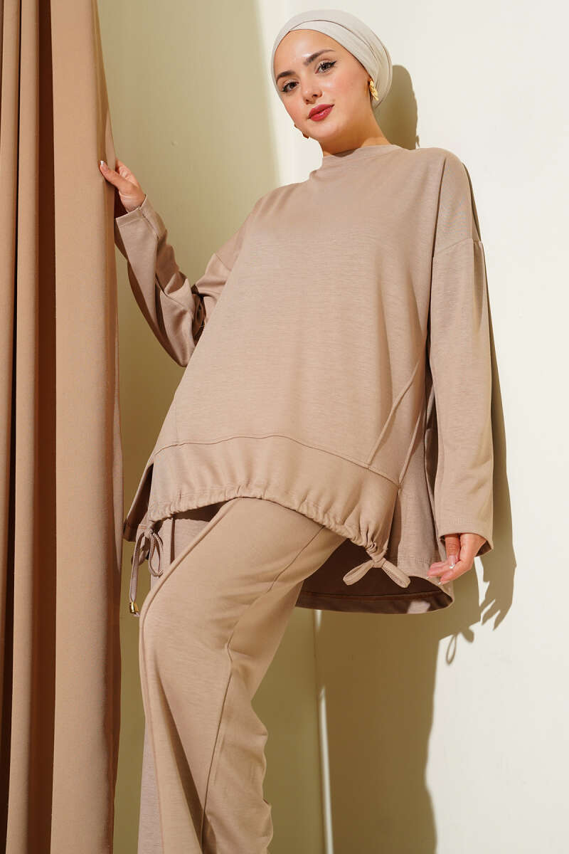 Kapüşonlu Uzun Tunik İkili Takım Kahve