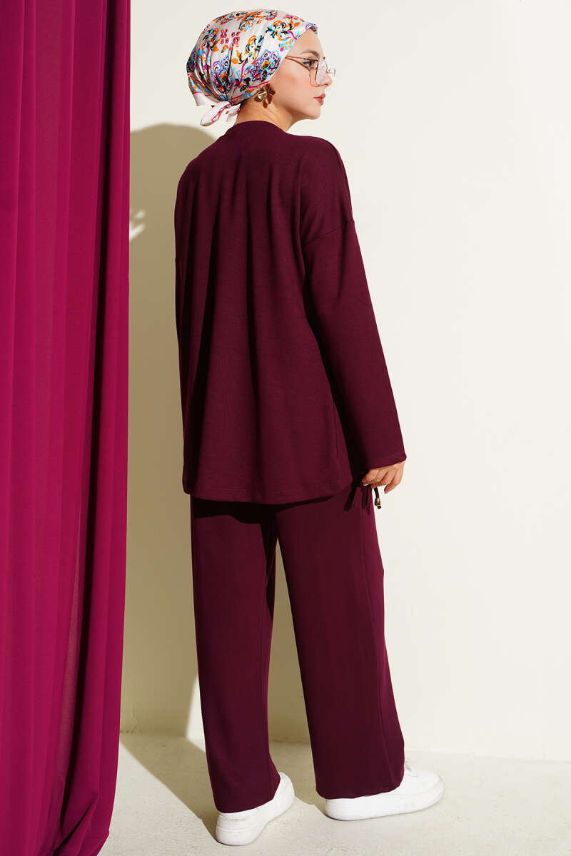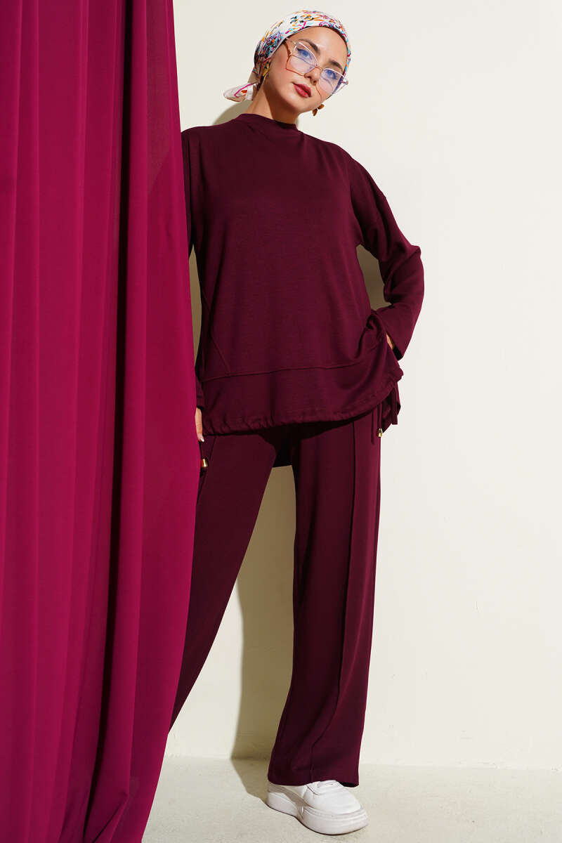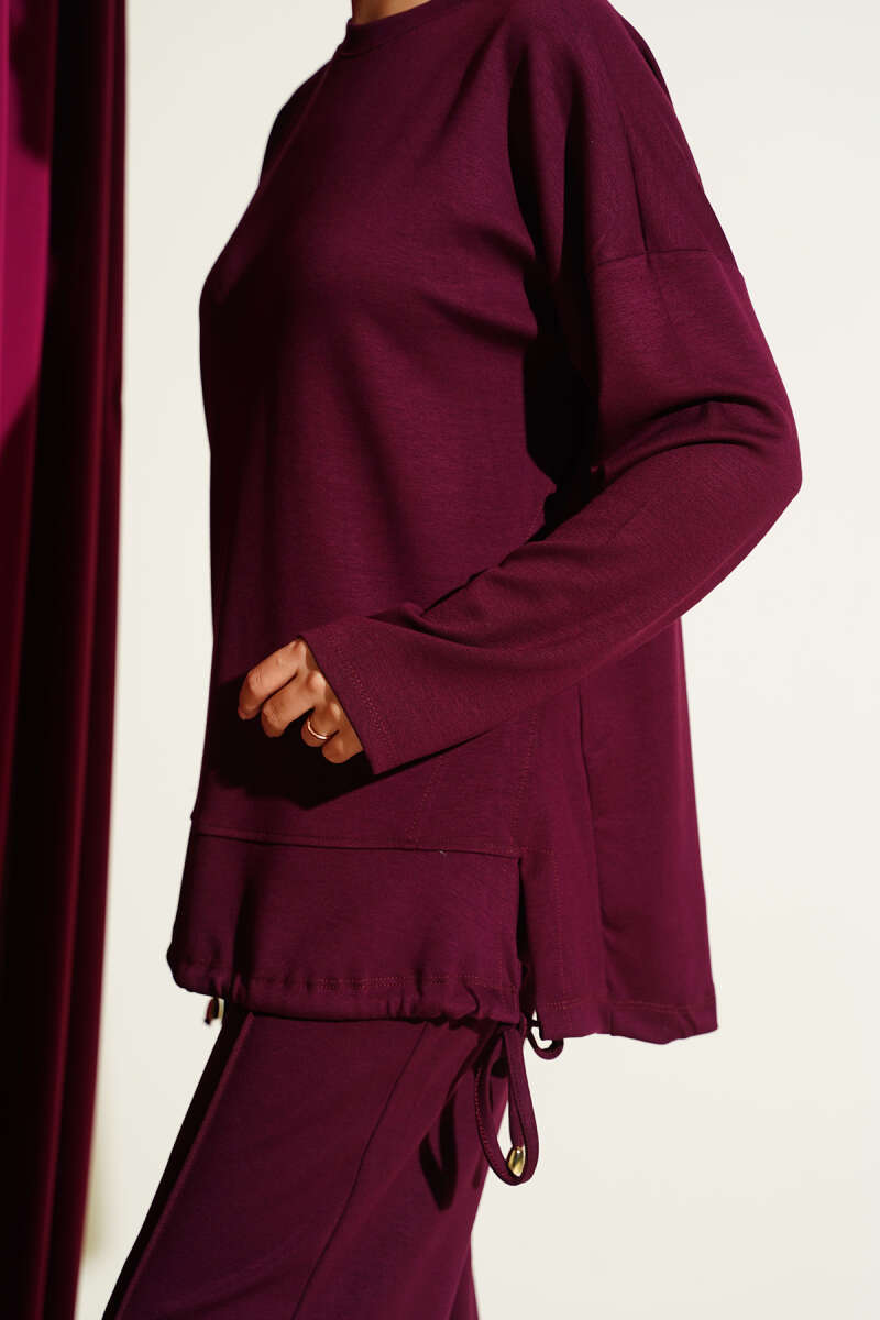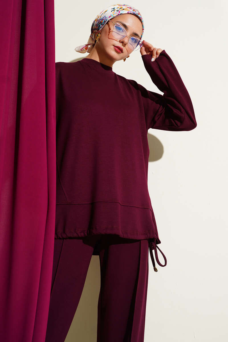 Balon Kol Dik Yaka Triko Tunik Bordo