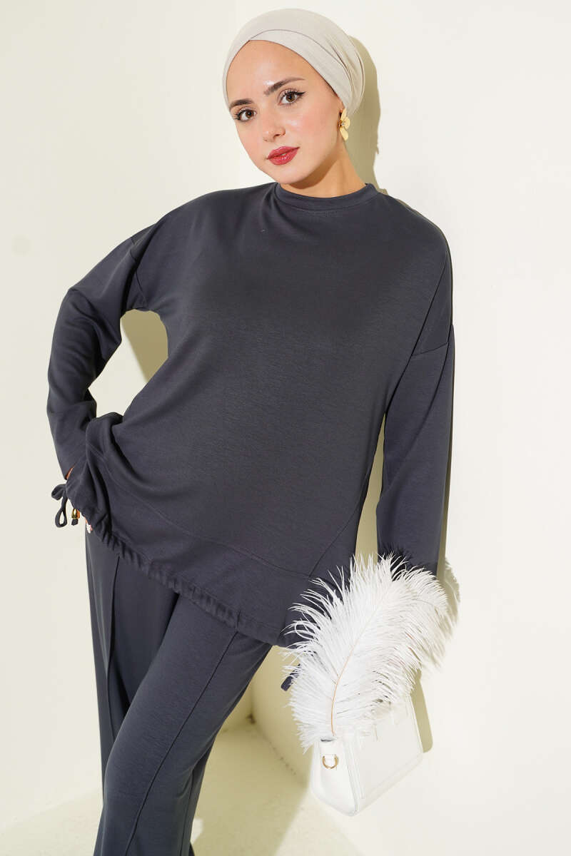 Örgü Yandan Bağlamalı Triko Süveter Gül Kurusu