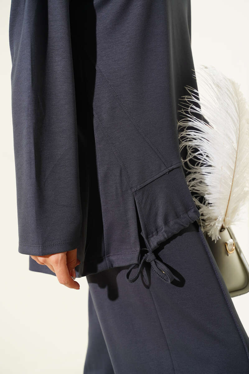 Balıkçı Yaka Fitilli Kuşaklı İkili Takım Mavi
