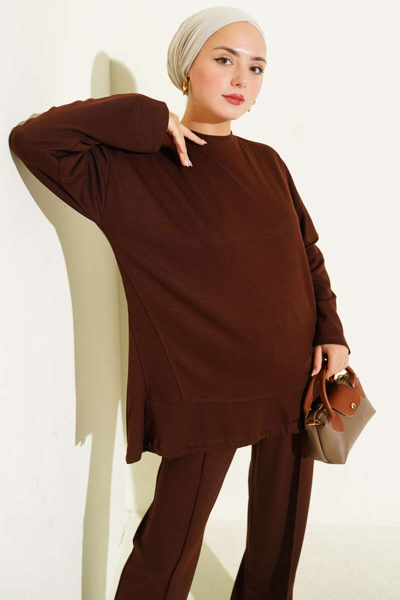 Dabıl Kat Kat Düz Elbise Kahve