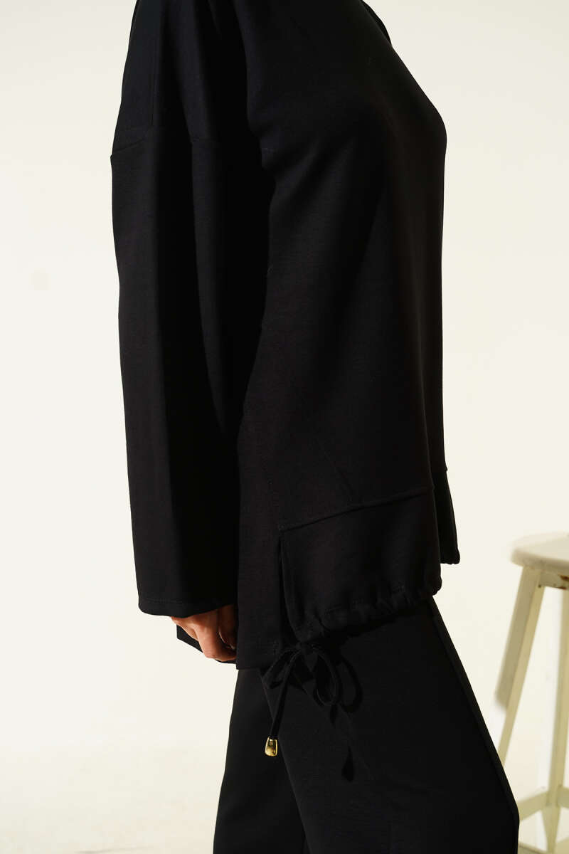 Örgü Yandan Bağlamalı Triko Süveter Gül Kurusu