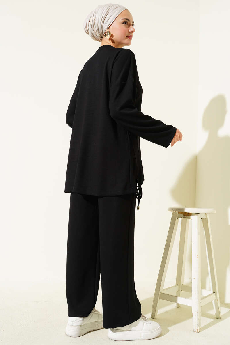 Balıkçı Yaka Fitilli Kuşaklı İkili Takım Mavi