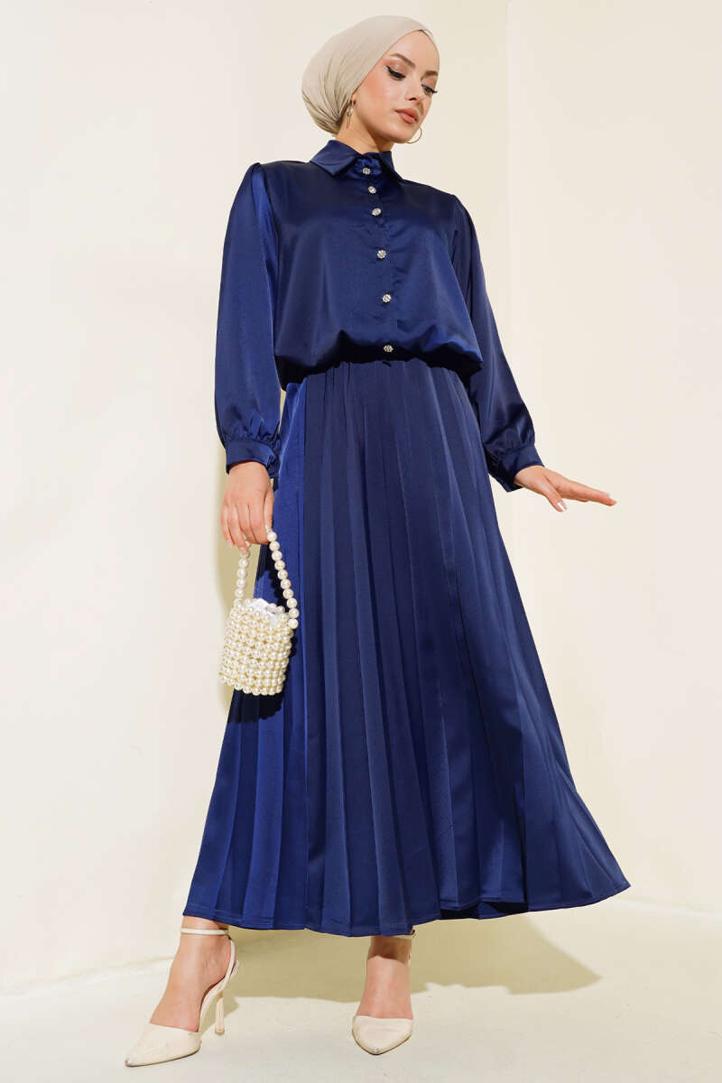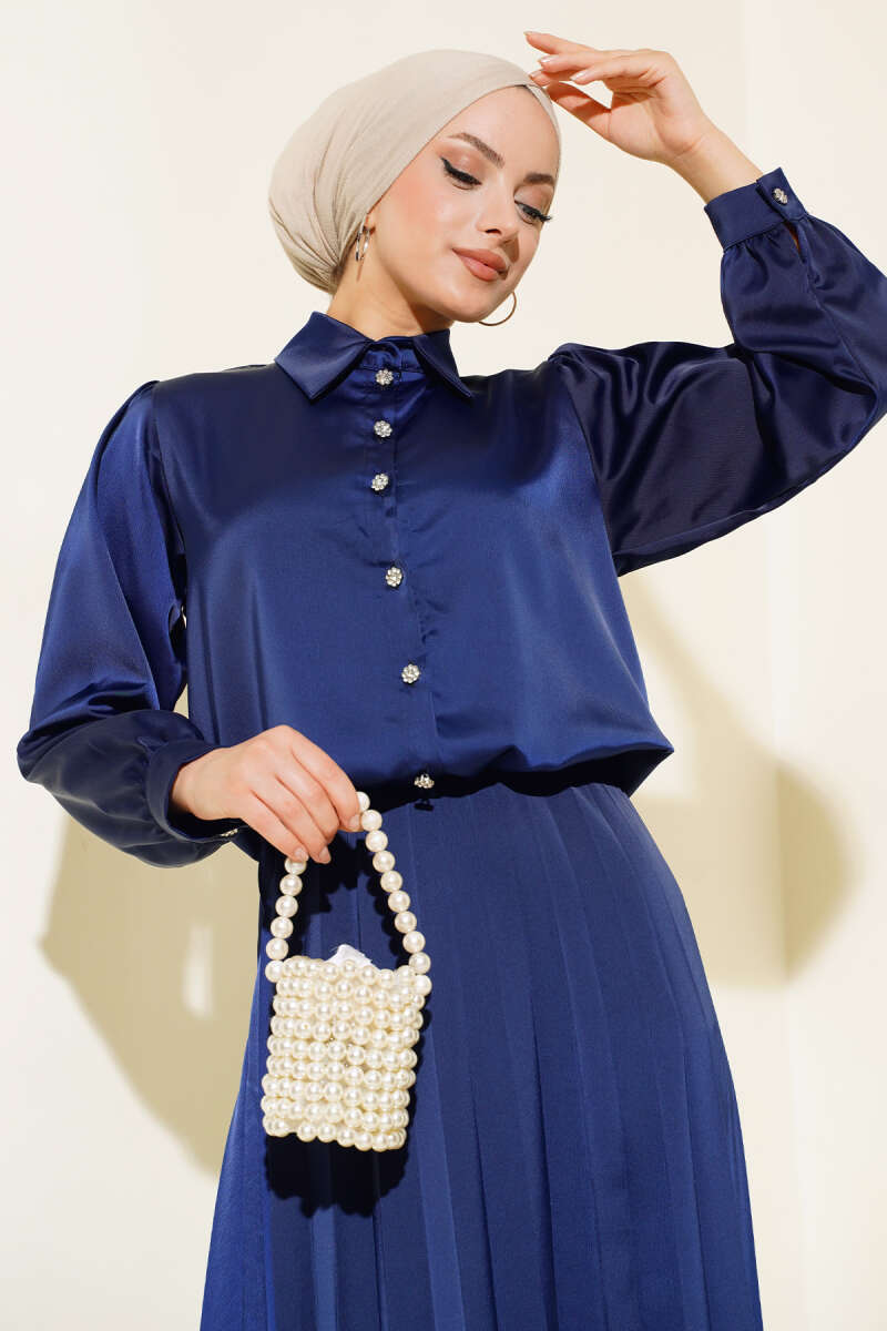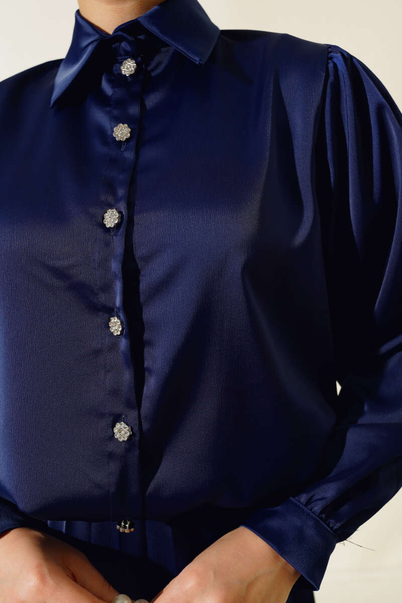 Loyşa Çiçekli Taşlı Tunik Lacivert