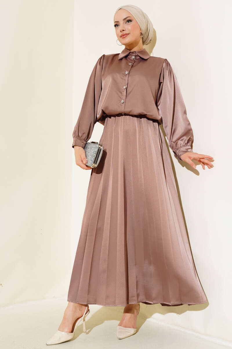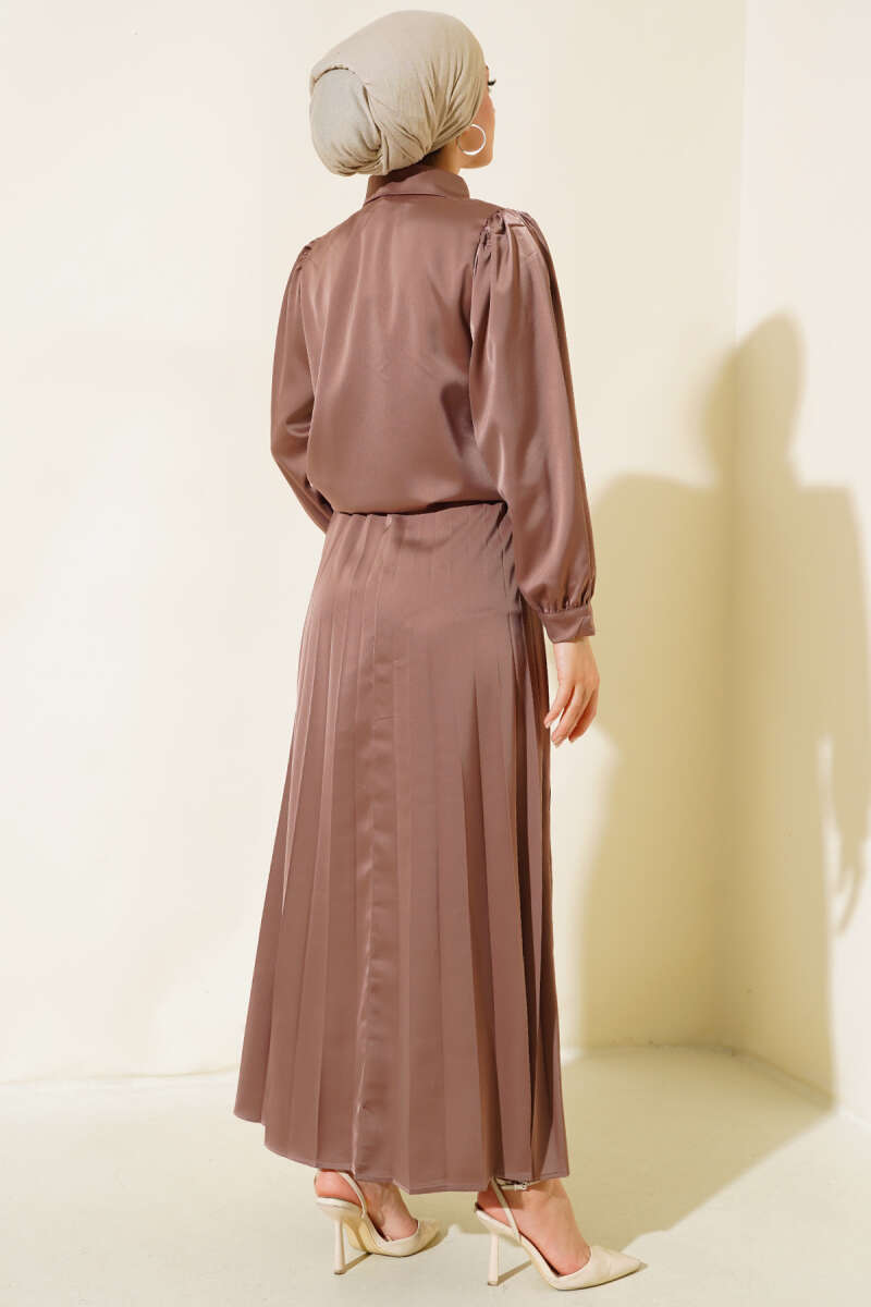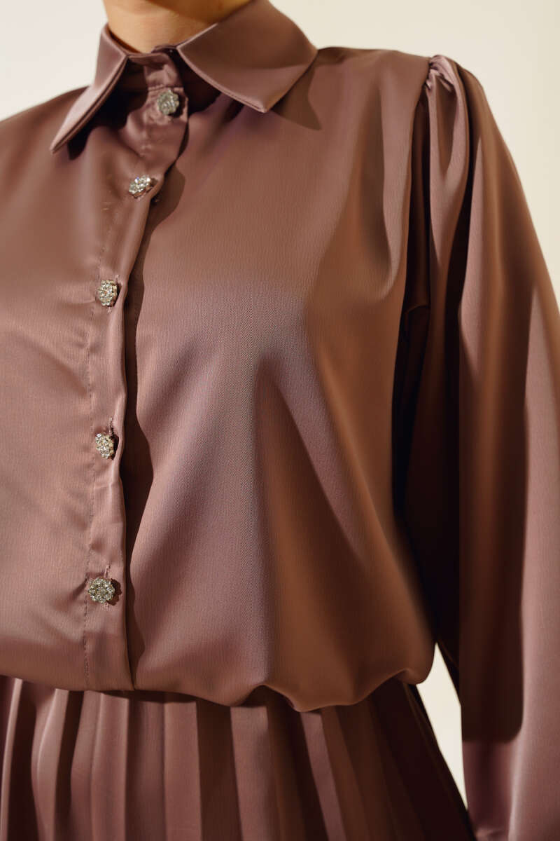 Brit Düğmeli Pileli Tensel Gömlek Latte