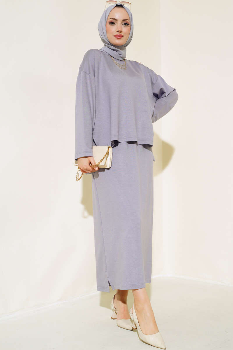 Yeni sezon ikili takım modelimiz sizlerle beraber. Bluzümüzün yakası bisiklet yakadır. Önü kısa arkası uzundur. Yanları yırtmaçlıdır. Eteğimizin beli lastiklidir. Etek ucu kenarları kısa yırtmaçlıdır. Takımımızı duruşu ve rahatlığıyla çok beğeneceksiniz. Renk seçeneklerimiz mevcuttur.