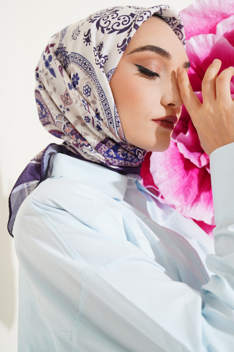 Etnik Çiçekli Soft Eşarp Koyu Mor