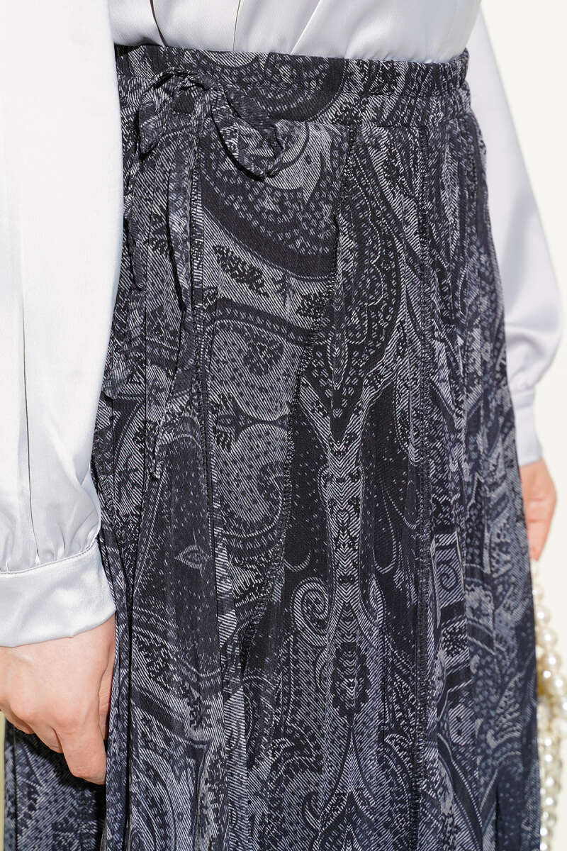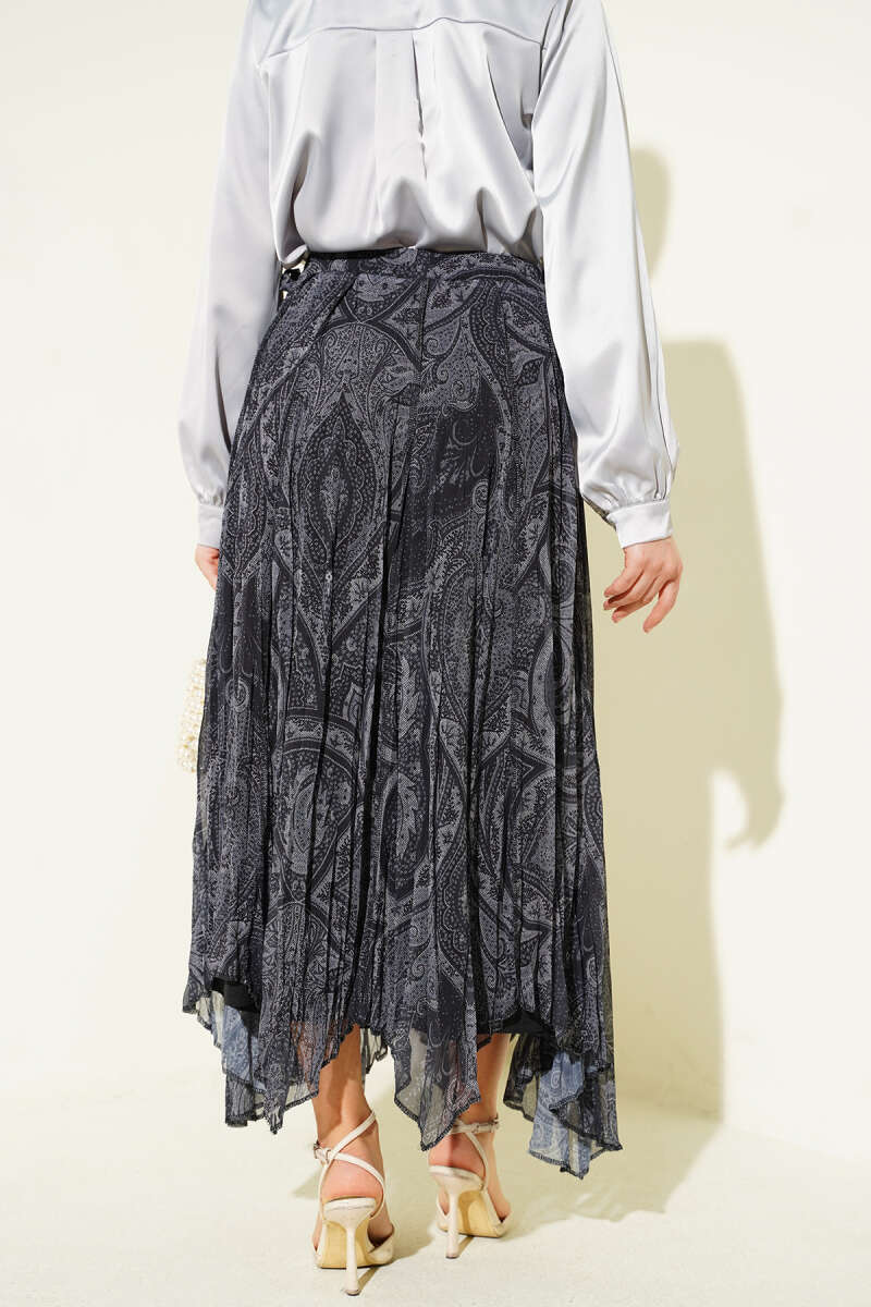 Etnik Desenli Kemerli Kloş Etek Siyah