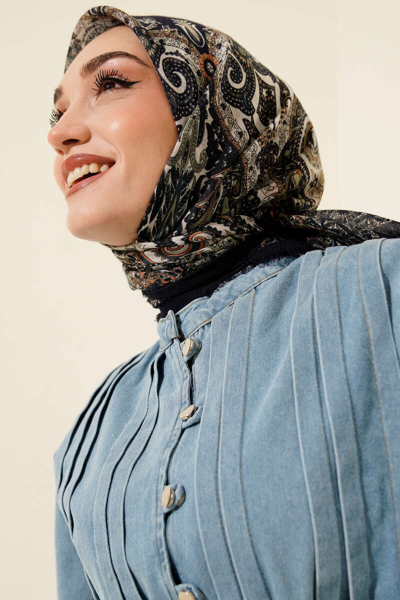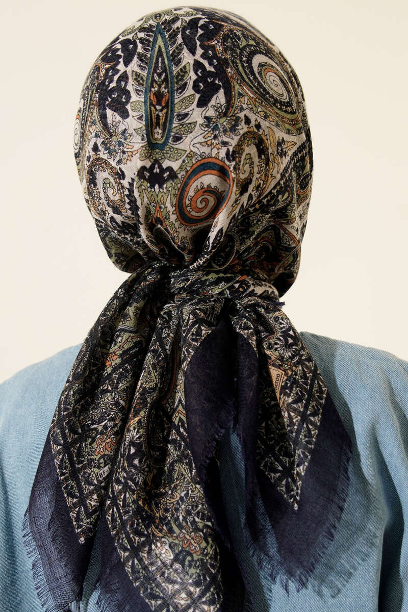 Sarmal Desen Demore Eşarp Lacivert Bej