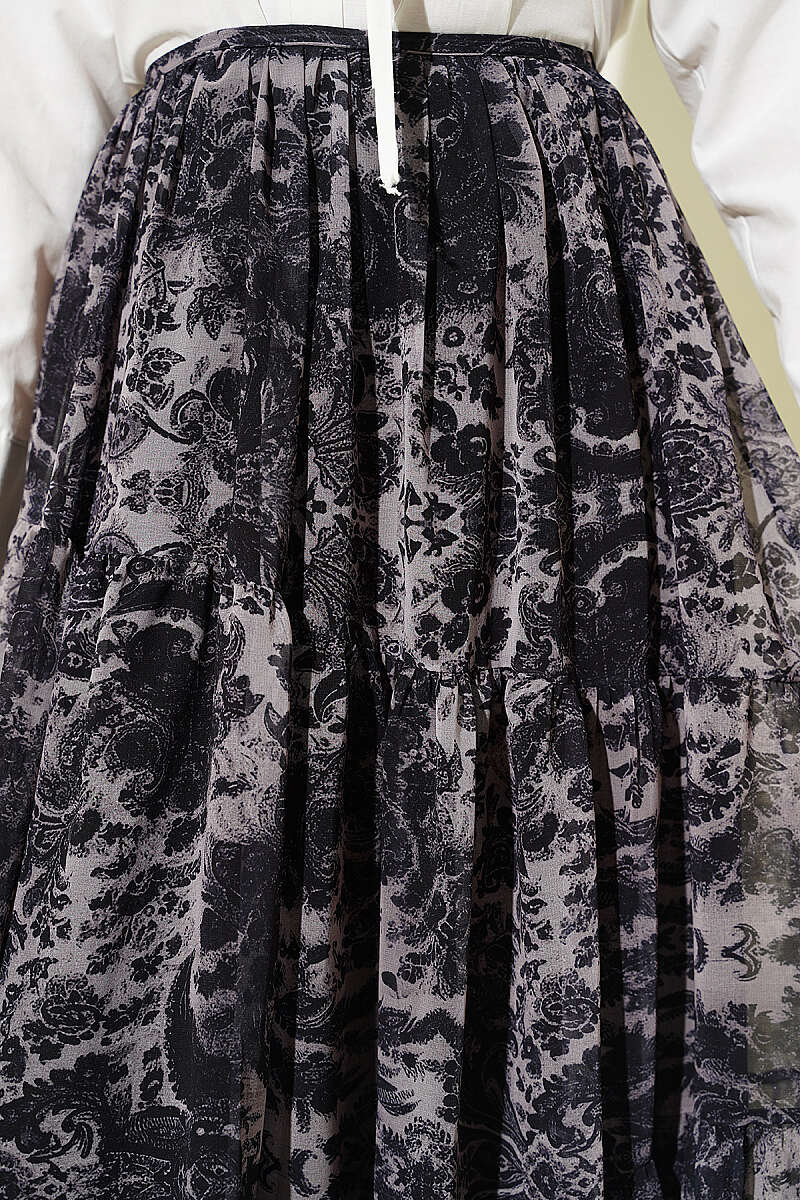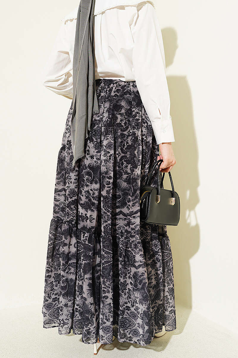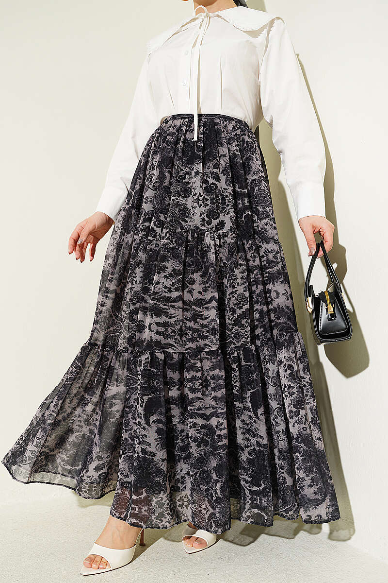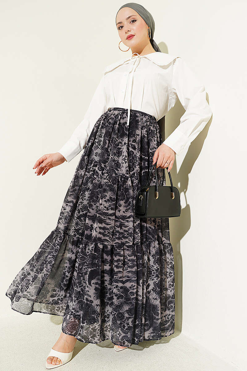 Bu etek, geleneksel çizgileri modern bir formla buluşturan etnik desenleri ve uçuş uçuş şifon kumaşıyla dikkat çeken zarif bir parçadır. Tasarımındaki katlı kesim detayları, eteğe feminen bir hacim kazandırırken her adımda dinamik ve akıcı bir görünüm sergilemenizi sağlar. Bel kısmındaki esnek yapı sayesinde gün boyu konfor sunan bu model, şıklığı ve rahatlığı bir arada arayanlar için ideal bir tercihtir. Hem günlük kombinlerde hem de daha özel davetlerde bohem bir tarz oluşturmak için gardırobunuzun kurtarıcı parçalarından biri olmaya adaydır.