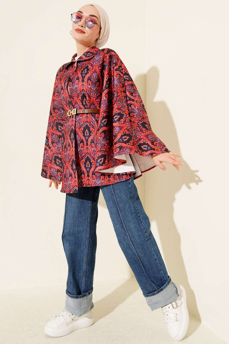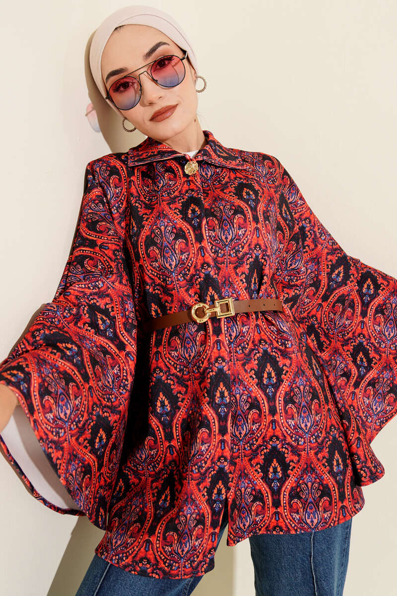 Gömlek Yaka Kuşaklı Kaşe Panço Vizon