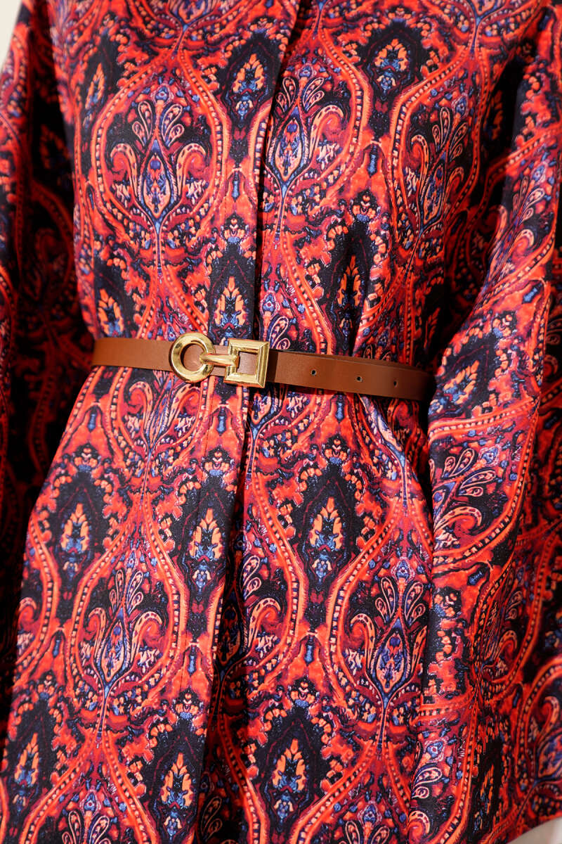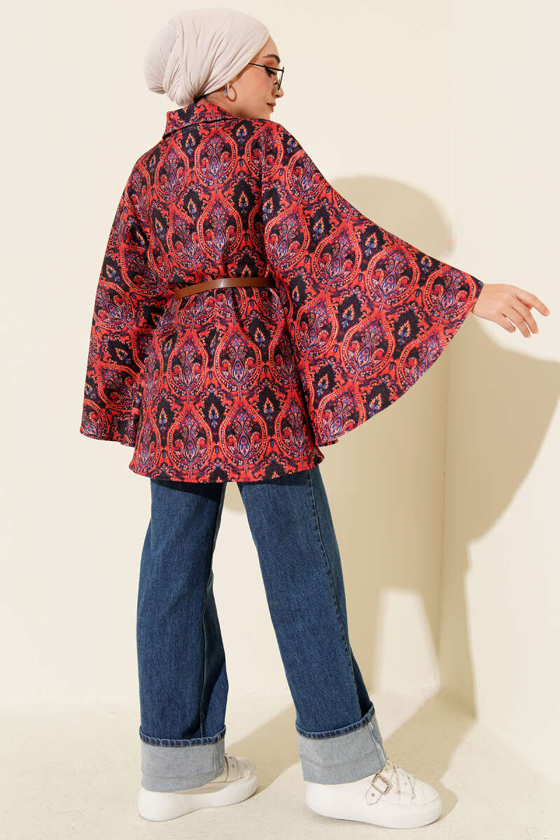 Gömlek Yaka Kuşaklı Kaşe Panço Füme