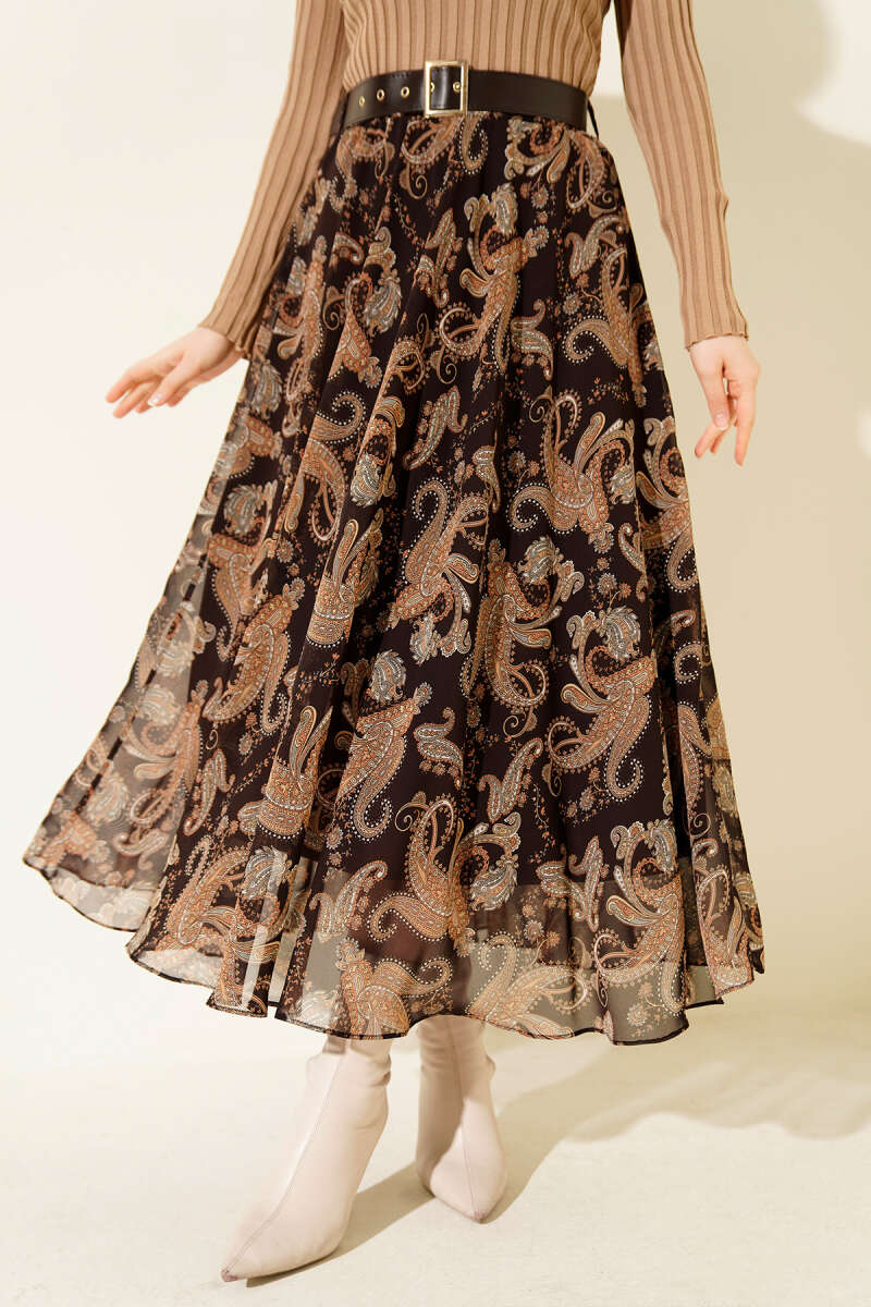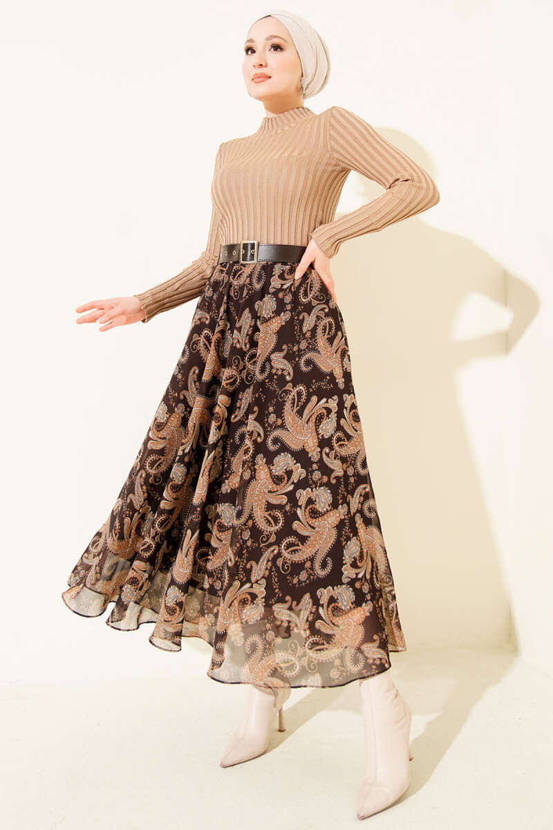 Kazayağı Desenli Etek Kahve