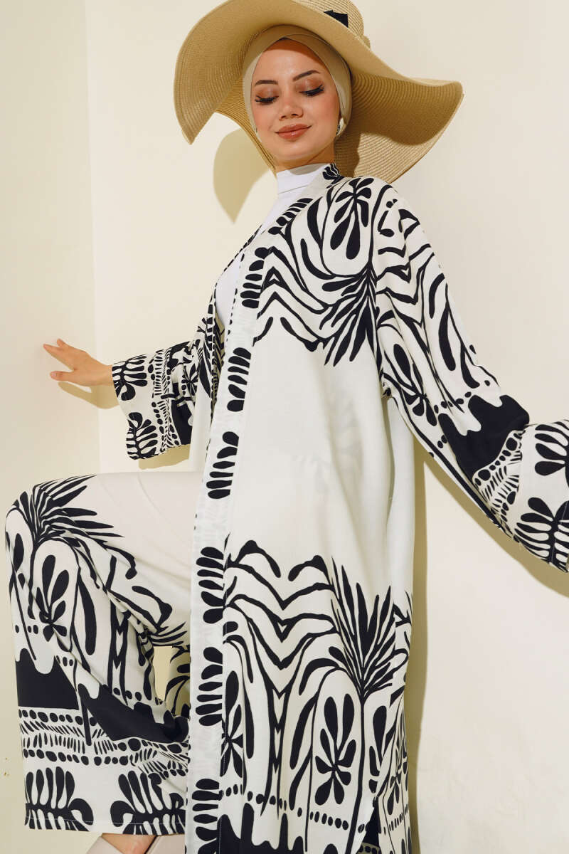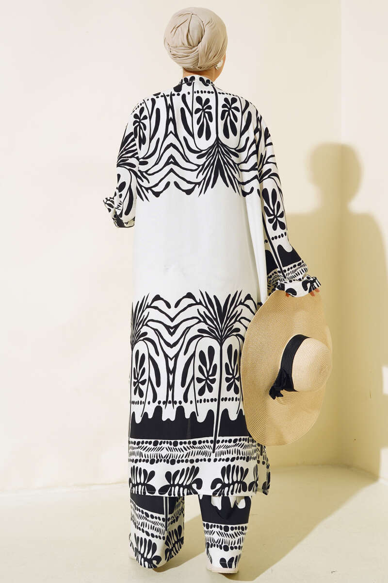 Etnik Desen Kimono İkili Takım Siyah