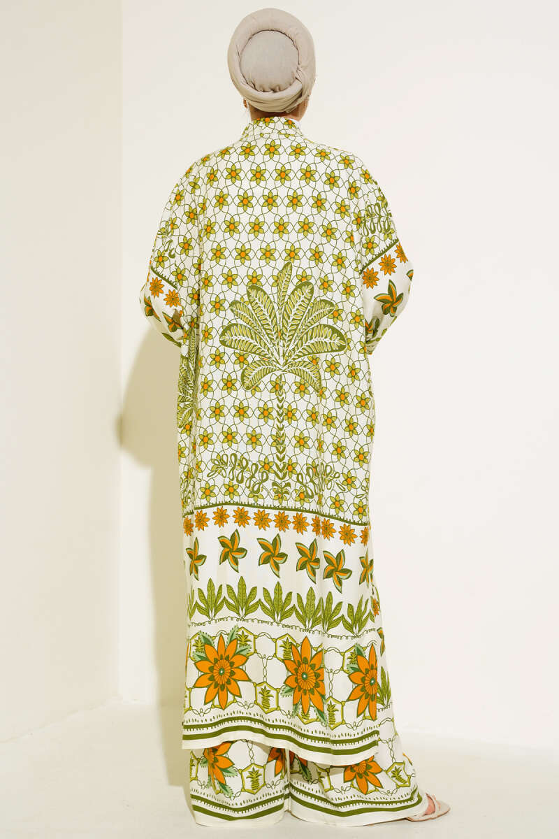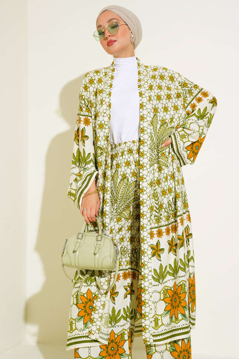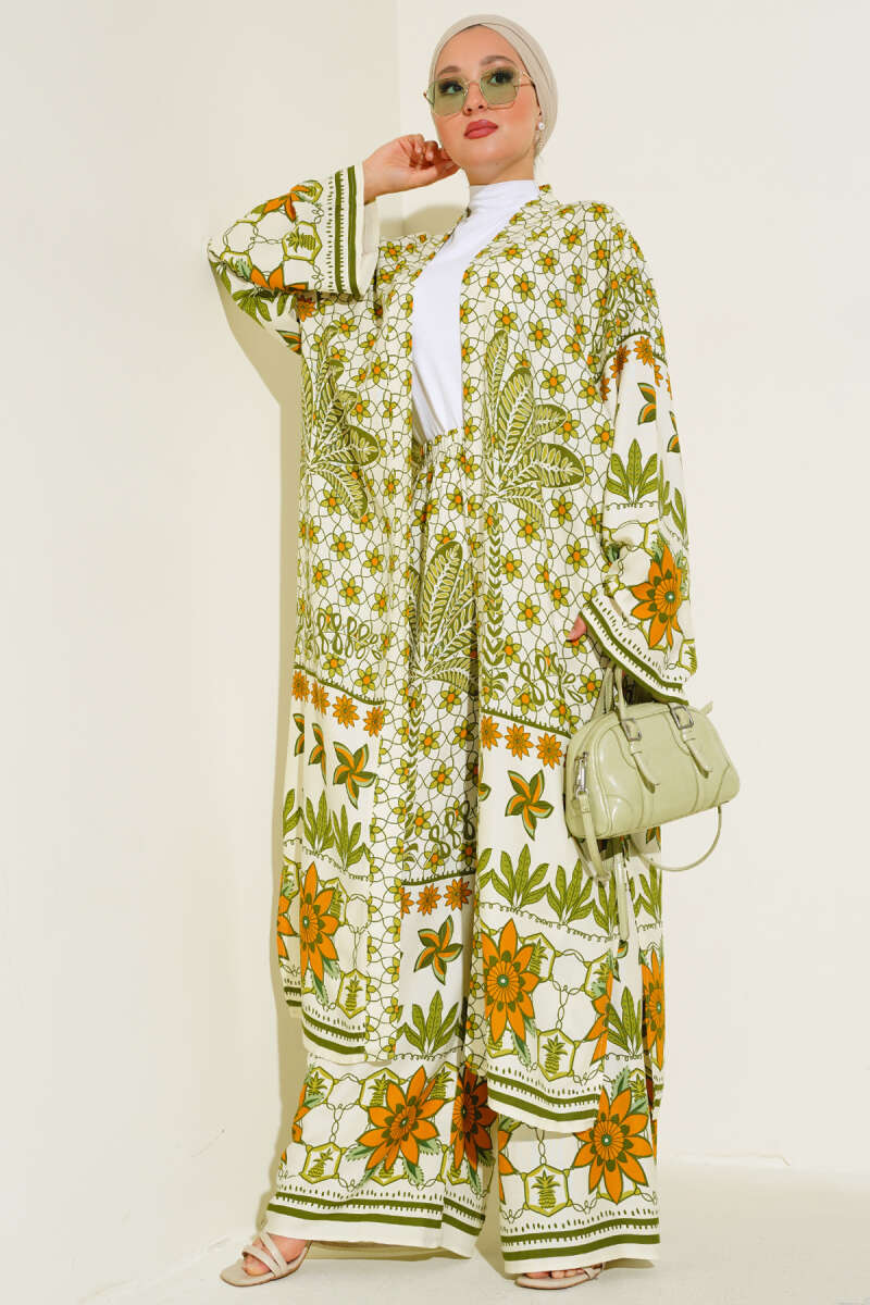 Etnik Desen Kimono İkili Takım Yağ Yeşili