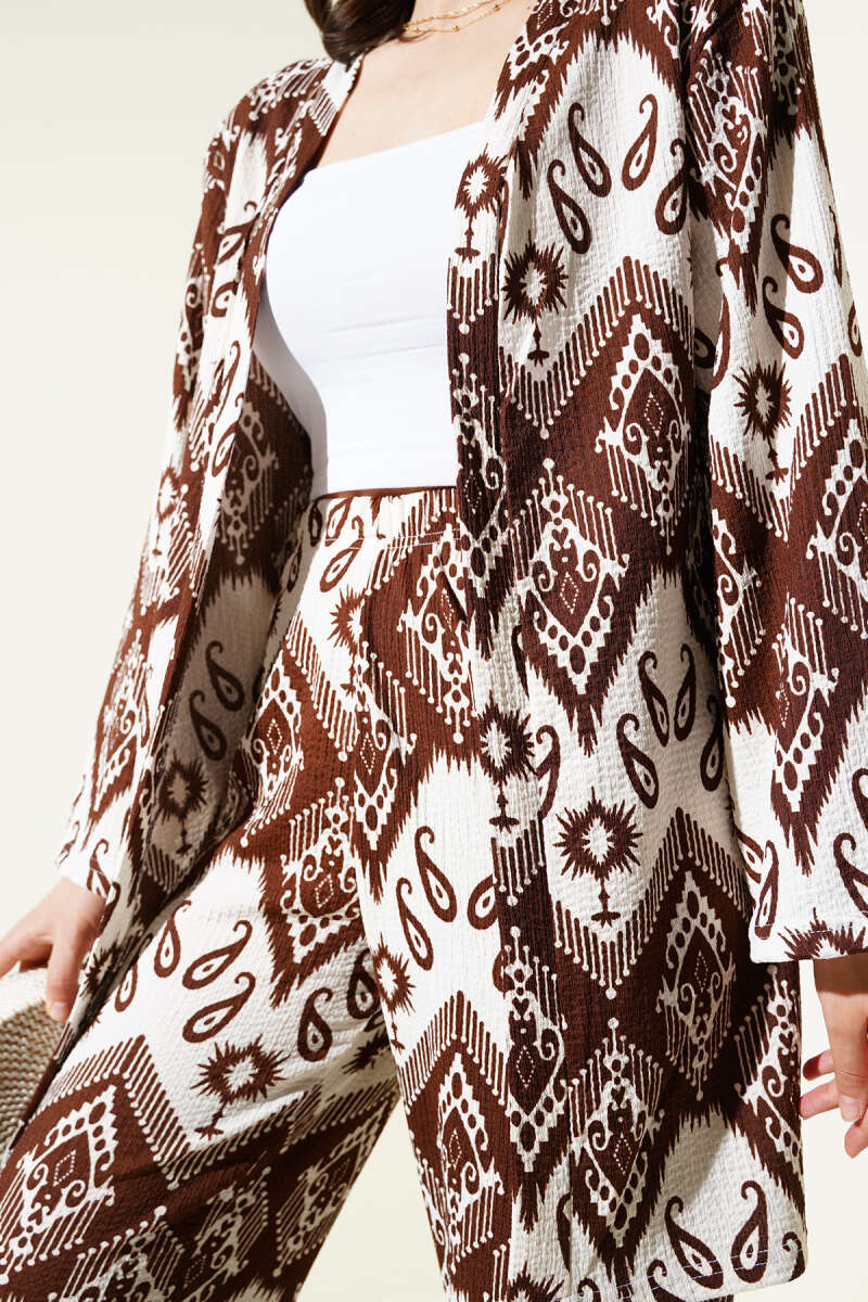 Karışık Desenli Bürümcük Kimono İkili Takım Lacivert