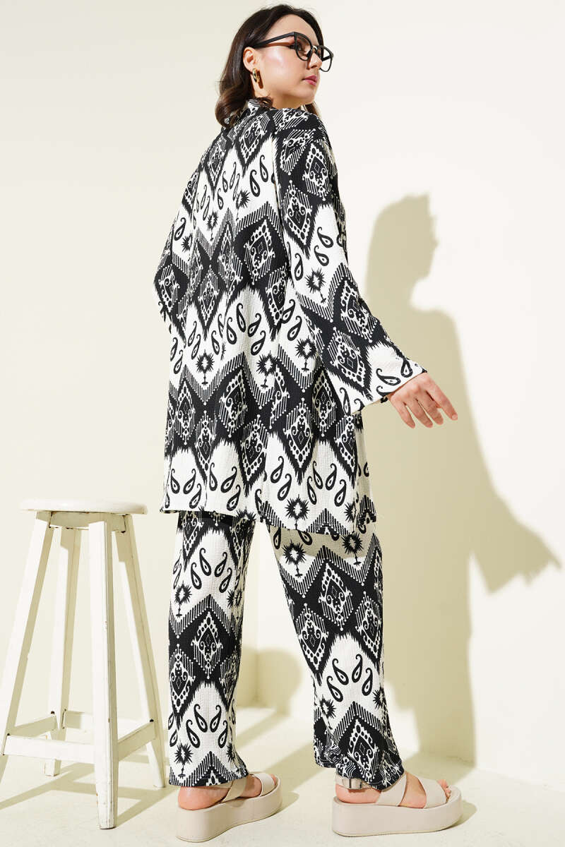 Taşlı Cep Kapaklı Fermuarlı Etekli İkili Takım Siyah
