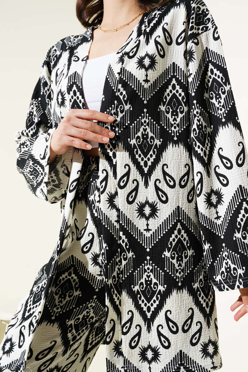 Beli Lastikli Karışık Desen Bürümcük Elbise Siyah