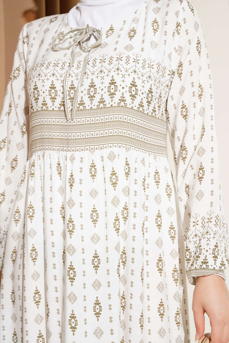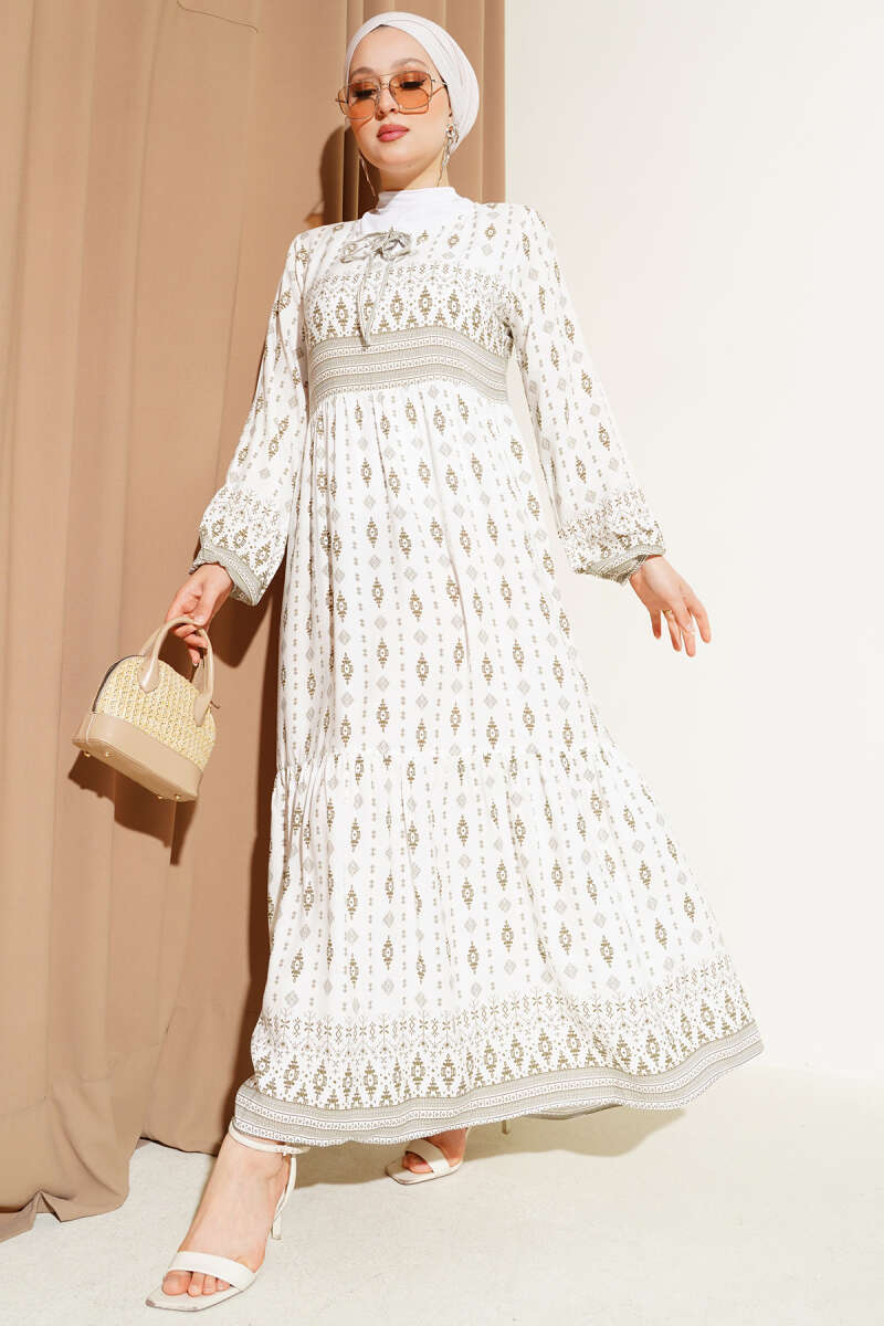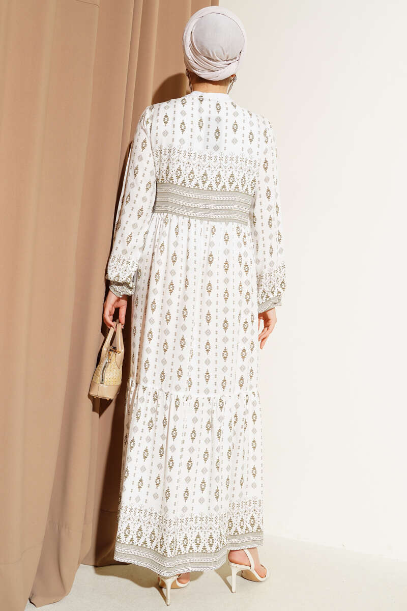 Gül Detaylı Pelerinli Abiye Elbise Haki