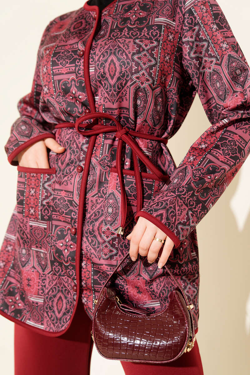 Etnik Desenli İp Bağcıklı İkili Takım Kahve