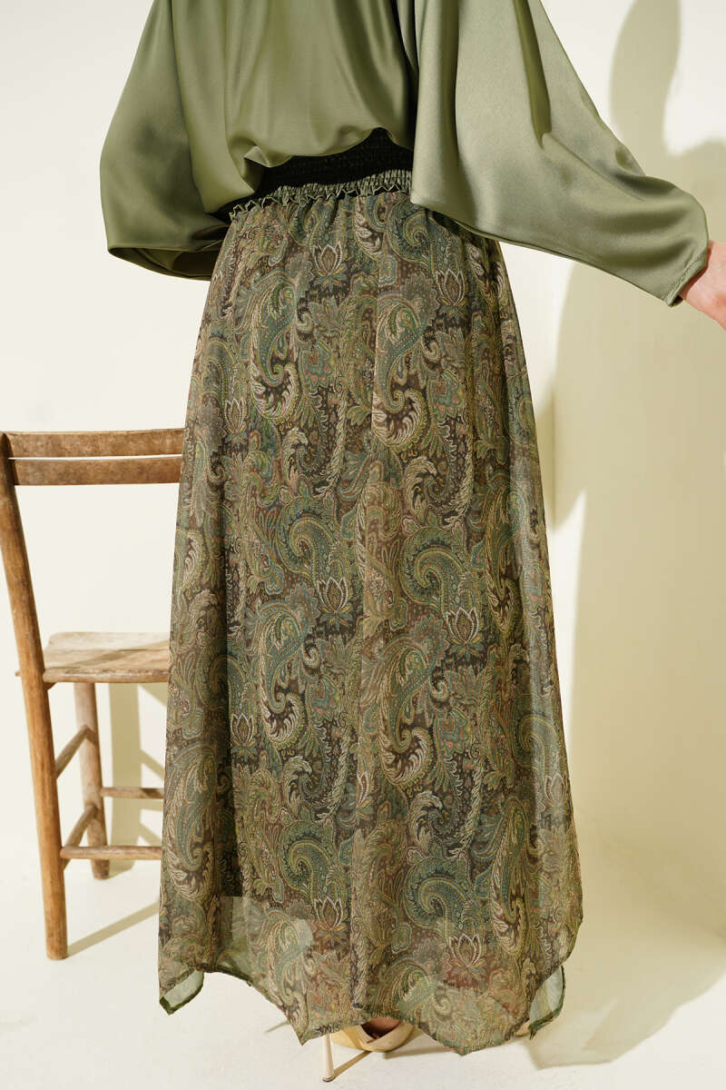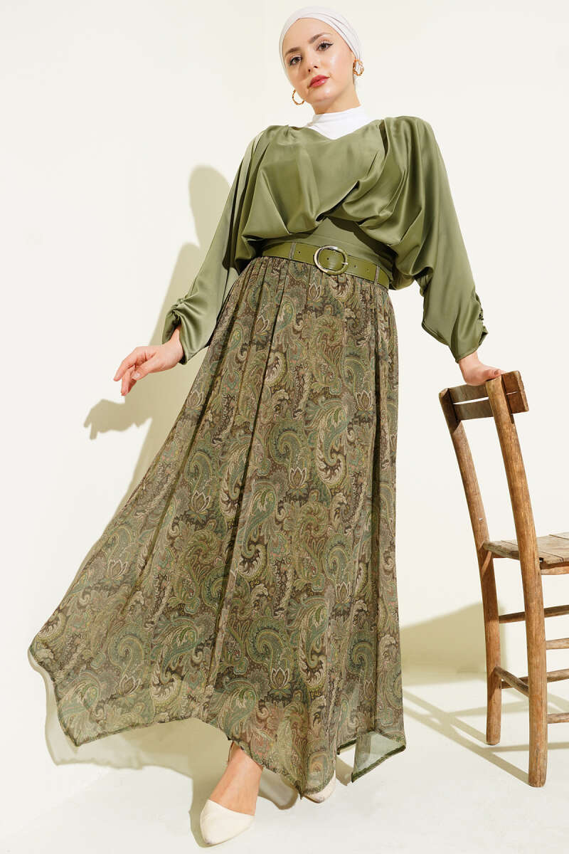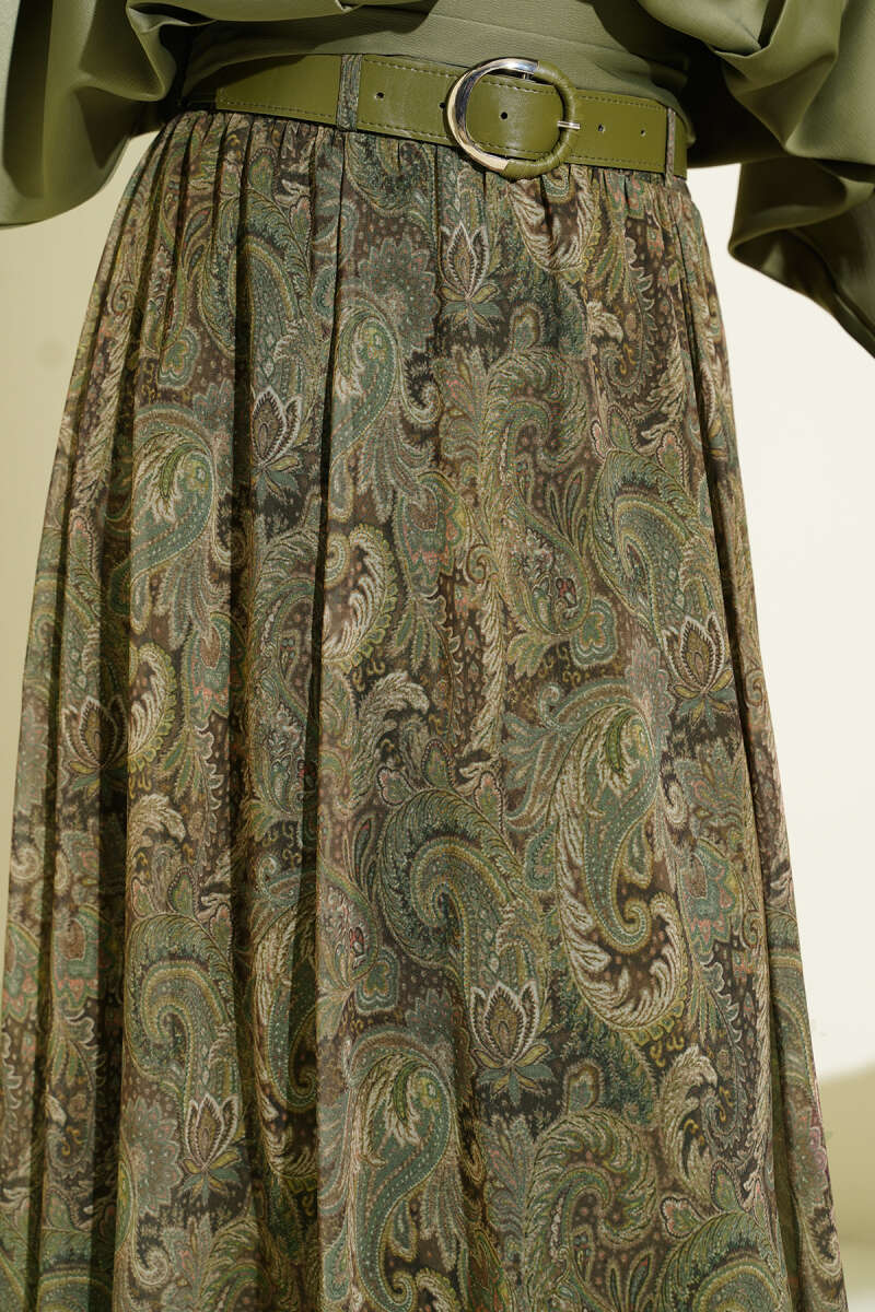 Puantiyeli Kemerli Etek Haki