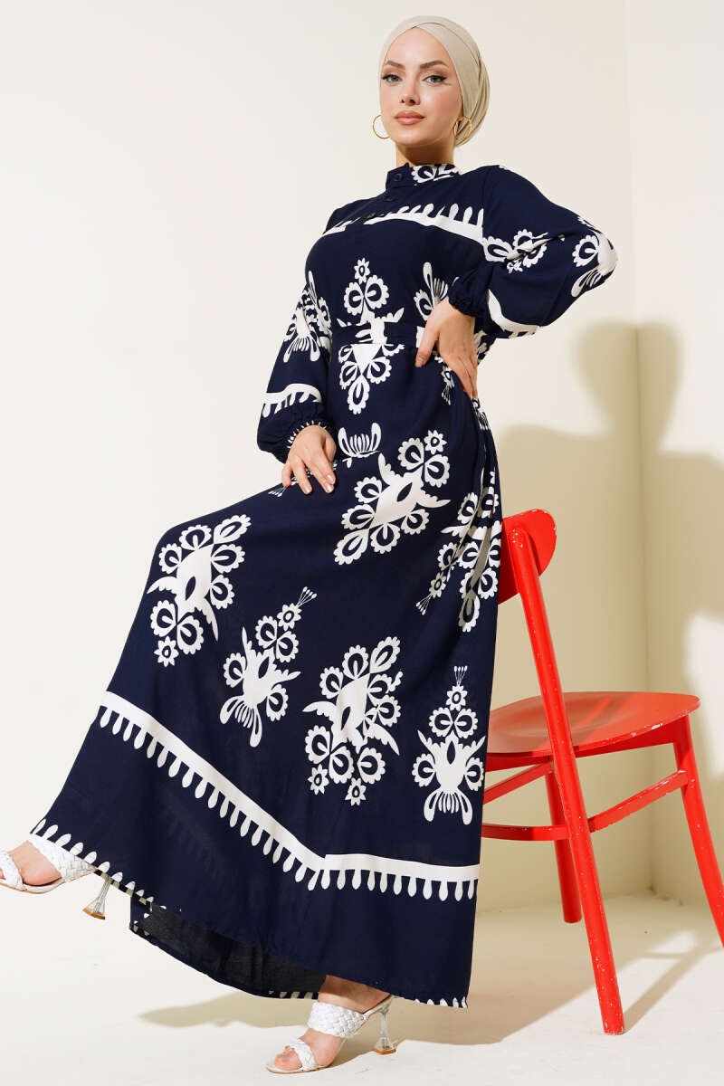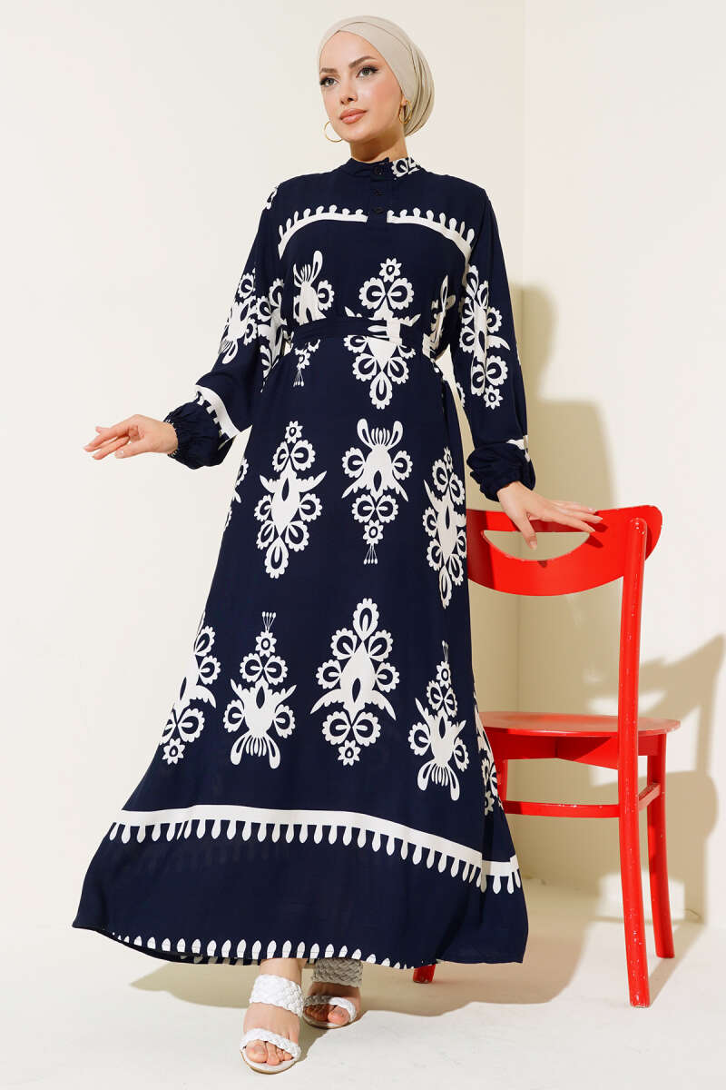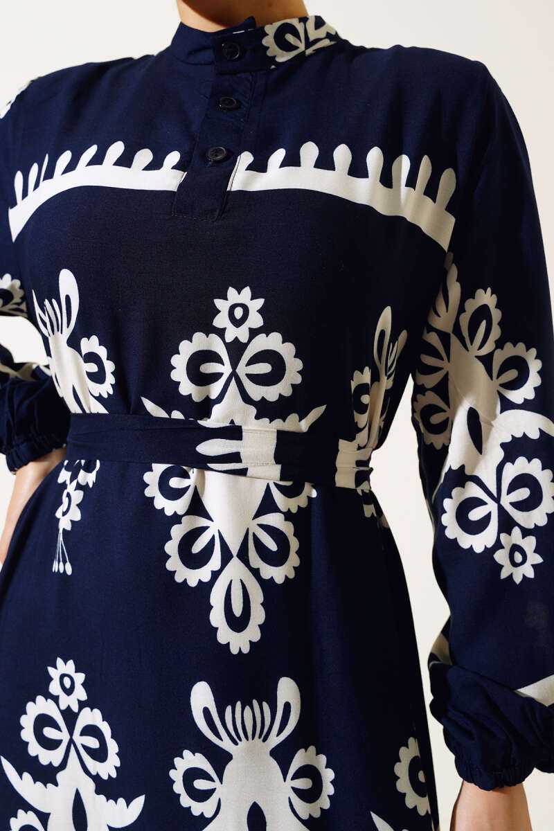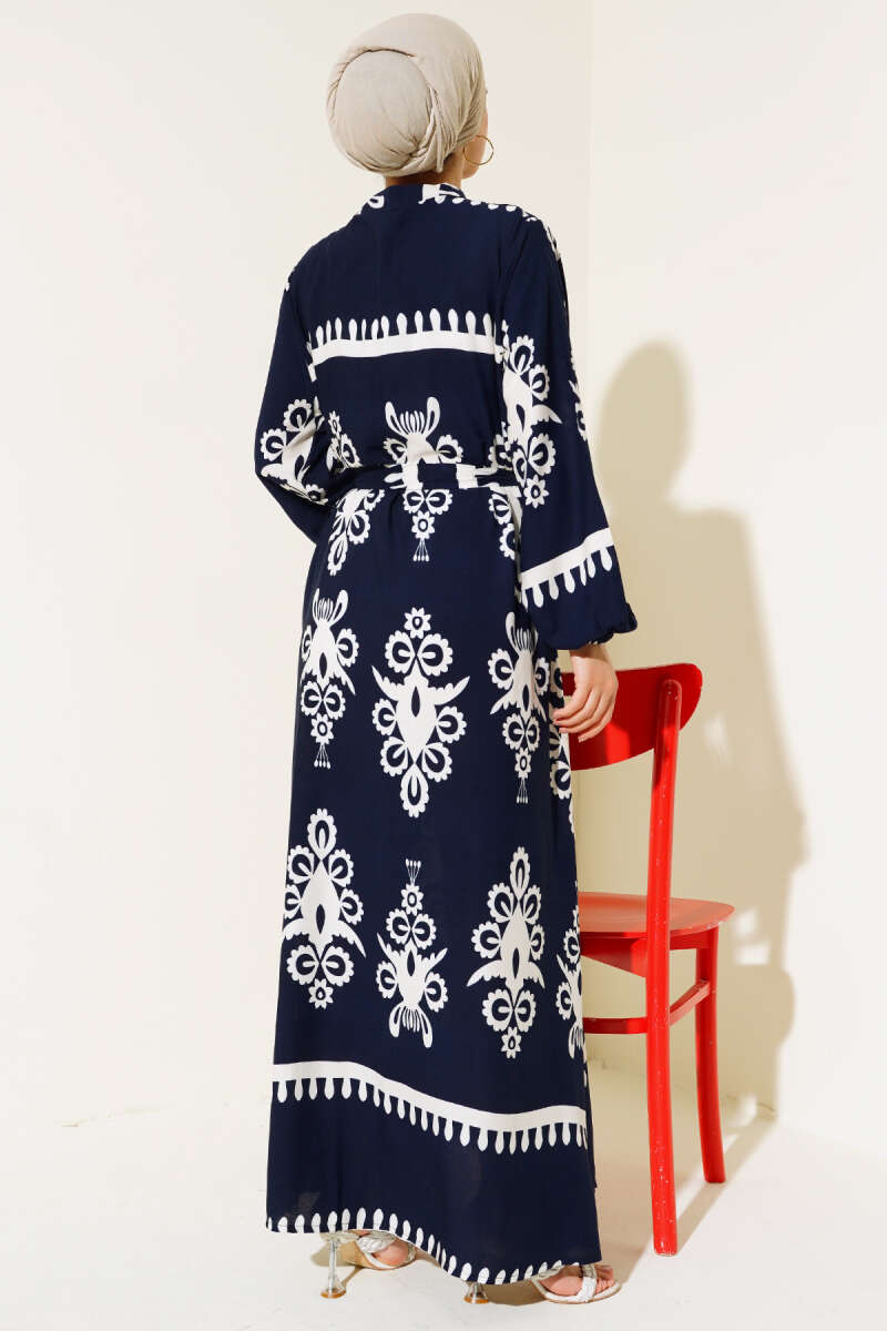 Gömlek Yaka Düğmeli Triko Elbise Lacivert
