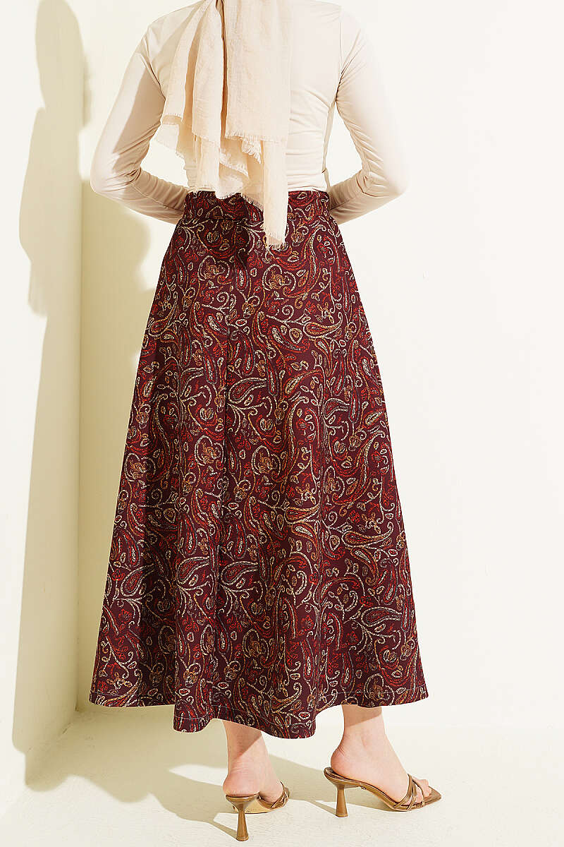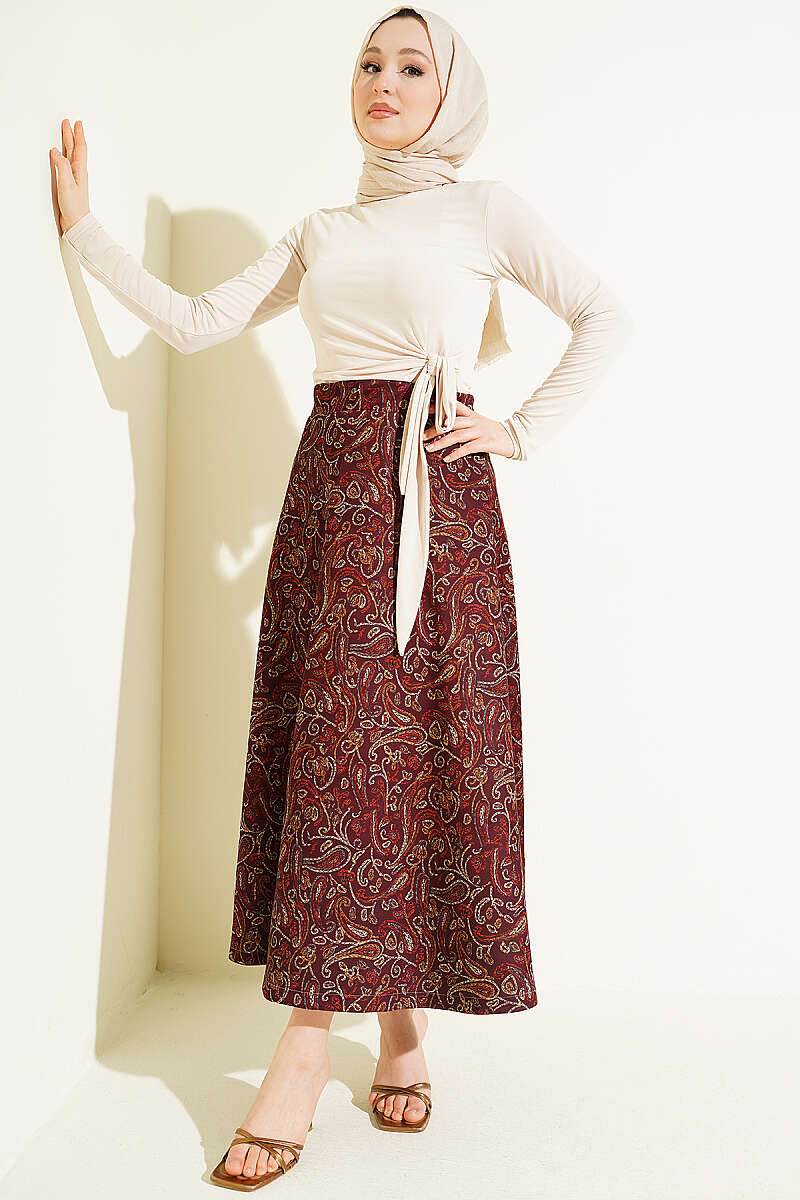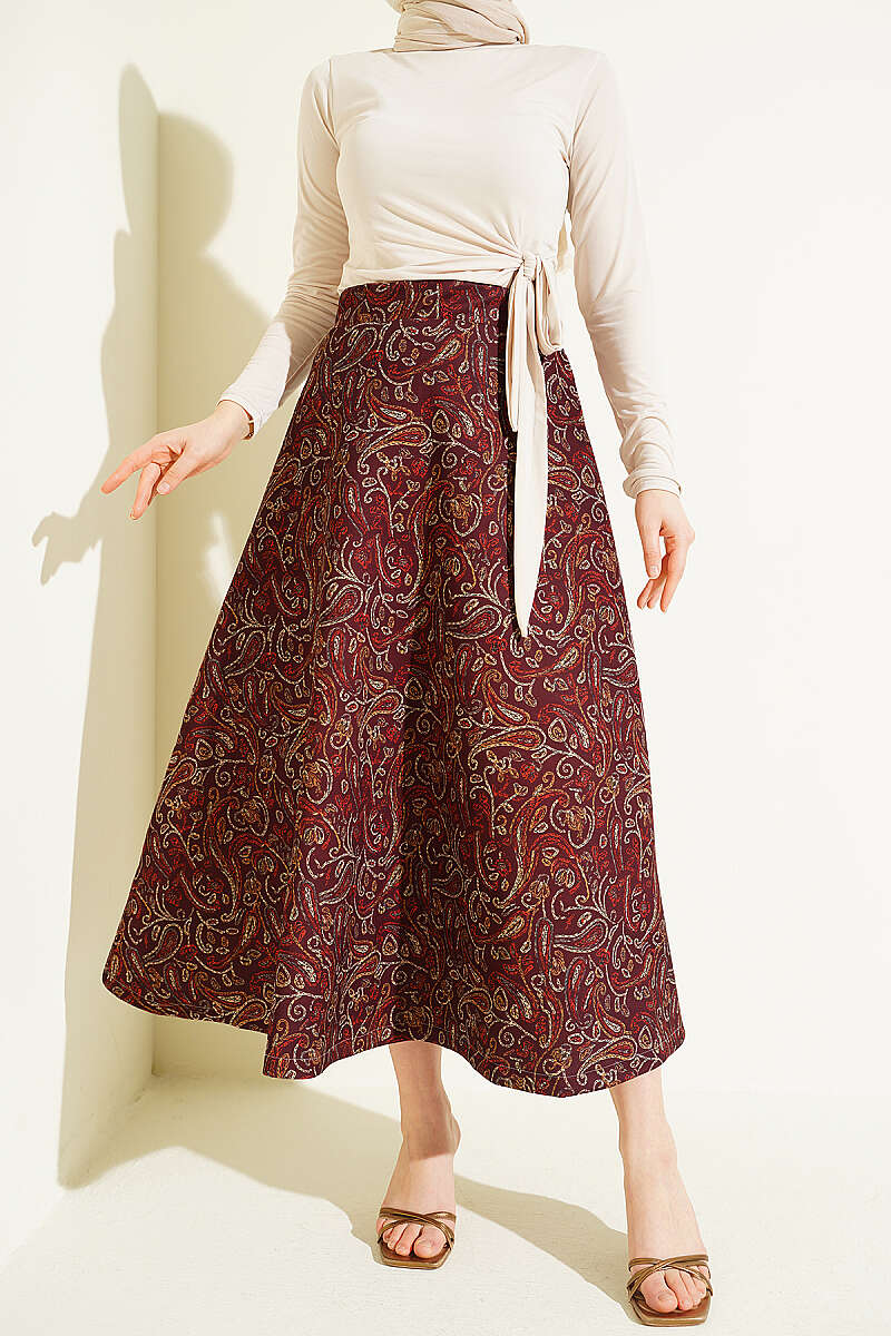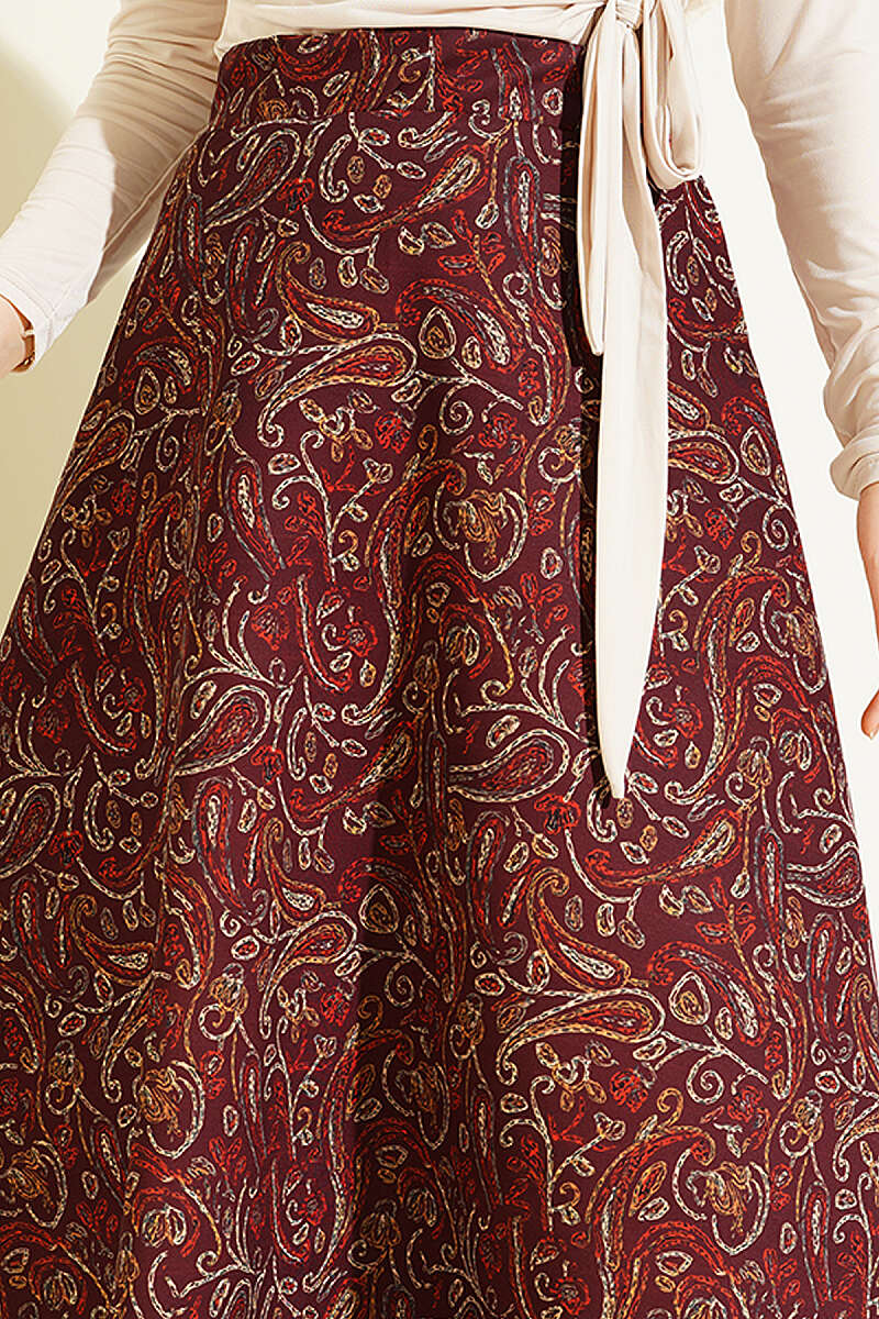 Etnik Desenli Scuba Etek Bordo