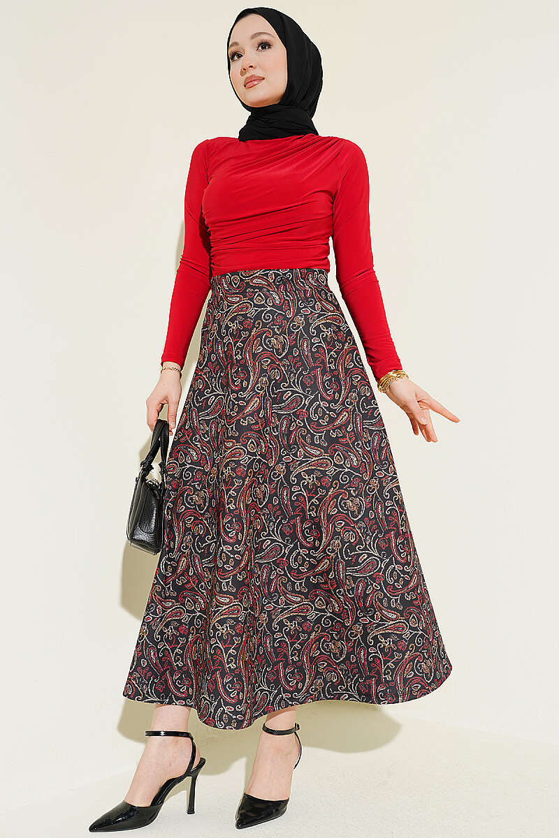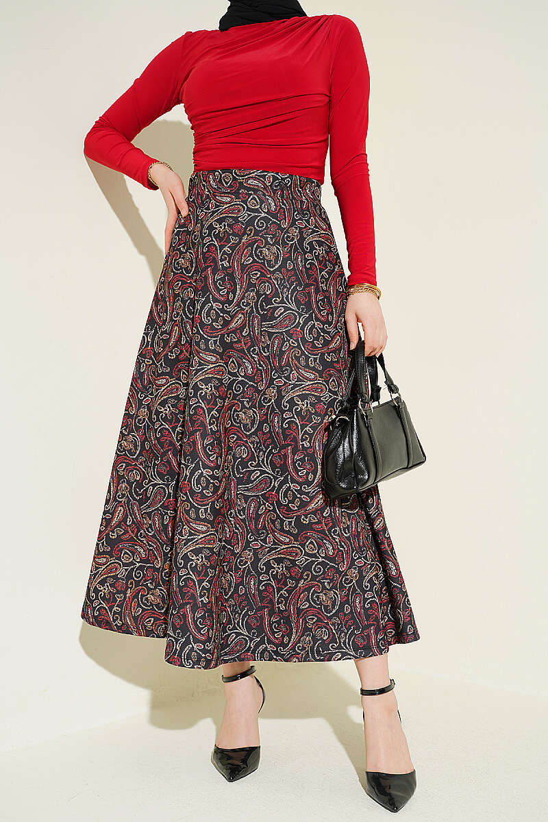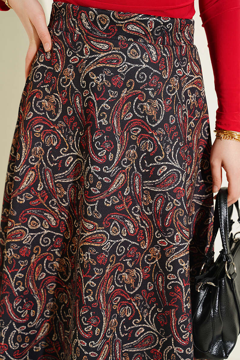Etnik Desenli Scuba Etek Bordo